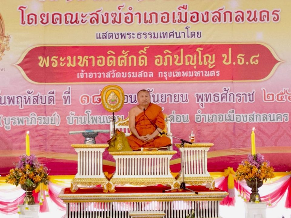 สำหรับโครงการธรรมสัญจร เป็นกิจกรรมที่คณะสงฆ์จังหวัดสกลนคร ร่วมกับอำเภอเมืองสกลนคร จัดขึ้นในช่วงเทศกาลเข้าพรรษา เพื่อเปิดโอกาสให้พุทธศาสนิกชนได้มีโอกาสฟังธรรมเทศนาและร่วมปฏิบัติธรรมอย่างต่อเนื่อง โดยครั้งนี้นับเป็นครั้งที่ 18 ของการจัดกิจกรรม การแสดงพระธรรมเทศนาในครั้งนี้ ได้รับความเมตตาจาก พระมหาอดิศักดิ์ อภิปญฺโญ เจ้าอาวาสวัดบรมสถล (วัดดอน) กรุงเทพมหานคร มาแสดงธรรมโปรดแก่ผู้เข้าร่วมงาน