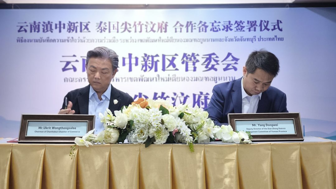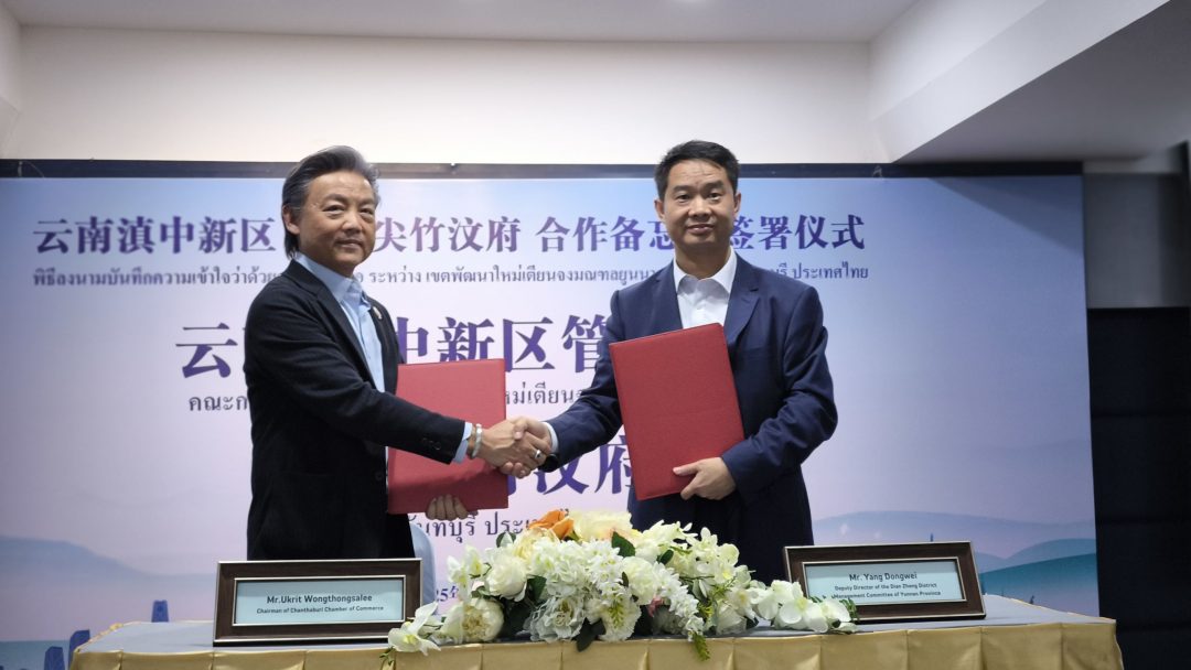 รองผู้อำนวยการคณะกรรมการบริหารเขตพัฒนาใหม่เตียนจง มณฑลยูนนาน กล่าวเสริมอีกว่า จังหวัดจันทบุรีถือเป็นพื้นที่การเกษตรสำคัญของประเทศไทย มีชื่อเสียงด้านผลไม้เมืองร้อนคุณภาพสูง เช่น ทุเรียน มังคุด มะพร้าว ลองกอง เป็นต้น เขตใหม่เตียนจง ยูนนาน กำลังจะเปิดดำเนินการศูนย์แปรรูปและการค้าผลไม้สดอาเซียน–ยูนนาน ซึ่งจะไม่เพียงเป็นสถานีถ่ายโอนผลไม้ แต่ยังเป็นศูนย์กลางเปิดกว้างสำหรับการบูรณาการเชิงลึกของห่วงโซ่อุตสาหกรรม ห่วงโซ่อุปทาน และห่วงโซ่มูลค่าทั้งสองฝ่ายสามารถใช้โอกาสนี้ขยายความร่วมมือเชิงลึกในด้านมาตรฐานการขนส่งเย็น การสร้างแบรนด์ และการอำนวยความสะดวกด้านการค้า นอกจากนี้ ด้วยศักยภาพด้านการออกแบบและสร้างสรรค์ของเขตใหม่เตียนจง ยูนนาน เมื่อผนวกรวมกับข้อได้เปรียบของจังหวัดจันทบุรีในการจัดหาและการแปรรูปวัตถุดิบอัญมณี จะสามารถก่อให้เกิดความร่วมมือที่ “งดงามดั่งอัญมณี” ร่วมกันสำรวจแนวทางการพัฒนาร่วมในด้านเขตปลอดอากรข้ามพรมแดน เพื่อสร้างแบบอย่างของความร่วมมือระดับภูมิภาคที่มีการถ่ายทอดเทคโนโลยี การเกื้อหนุนซึ่งกันและกันด้านทรัพยากร และการเอื้อประโยชน์ร่วมกันทางการตลาด ระยะทางทางภูมิศาสตร์ไม่เคยเป็นอุปสรรคต่อความใกล้ชิดของหัวใจมนุษย์ ความเกื้อกูลกันทางอุตสาหกรรมยิ่งทำให้ความร่วมมือเต็มไปด้วยโอกาส เขตใหม่ เตียนจง ยูนนาน พร้อมเปิดใจกว้างและดำเนินการอย่างจริงจัง เพื่อร่วมมือกับจังหวัดจันทบุรี — ทั้งการเสริมความร่วมมือดั่งเดิมด้านการค้าผลไม้ และการขยายสู่สาขาใหม่ ๆ เช่น เศรษฐกิจดิจิทัล และพลังงานสีเขียวเพื่อให้ความร่วมมือของทั้งสองฝ่ายยกระดับจากการ “เชื่อมต่อเฉพาะจุด” ไปสู่การพัฒนาอย่างครอบคลุมและหลายมิติ.
