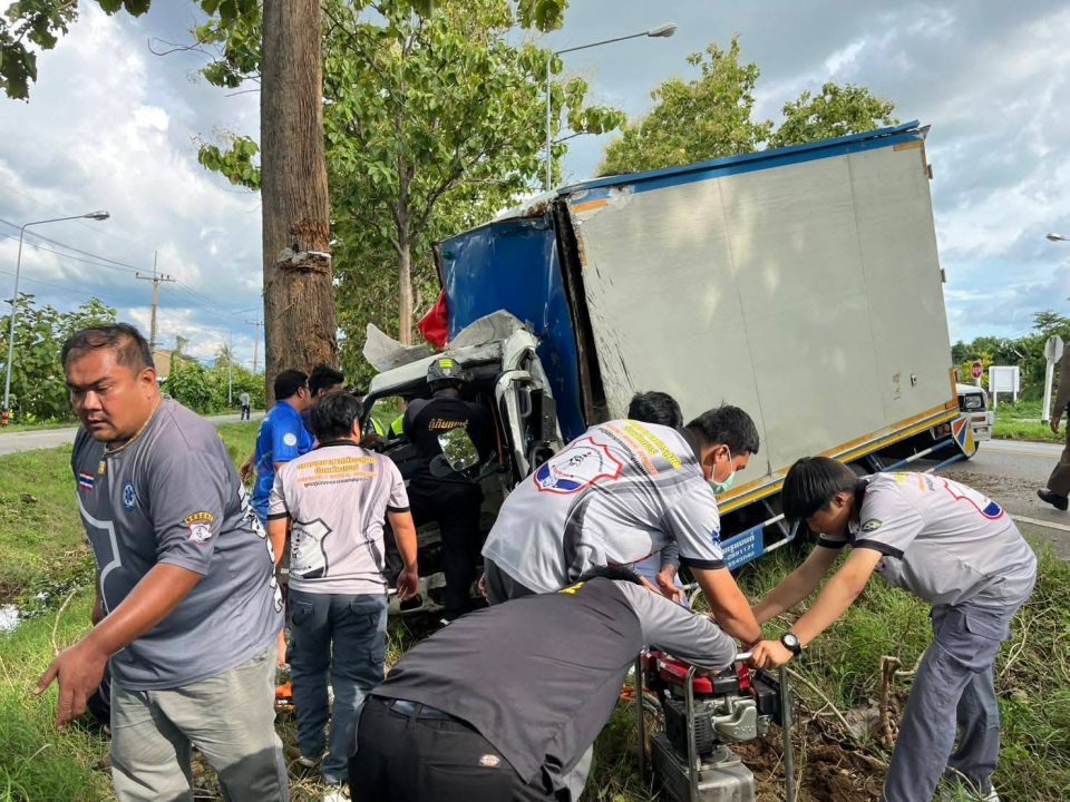 สมาคมอาสาสมัครกู้ภัยจังหวัดแพร่ ได้รับแจ้งจากศูนย์นเรนทรแพร่ 1669 ขอสนับสนุนอุปกรณ์ตัดถ่าง ช่วยผู้บาดเจ็บติดภายในรถ รถตู้ทึบ (4ล้อ) ชนต้นไม้ ถนนแพร่-ลอง ก่อนถึงด่านห้วยขมิ้น ม.2 ตำบลป่าเเมต อำเภอเมืองแพร่ จังหวัดแพร่ หลังได้รับแจ้งจึงจัดกำลังเจ้าหน้าที่กู้ภัยพร้อมอุปกรณ์ตัดถ่าง ออกทำการช่วยเหลือเป็นการด่วน