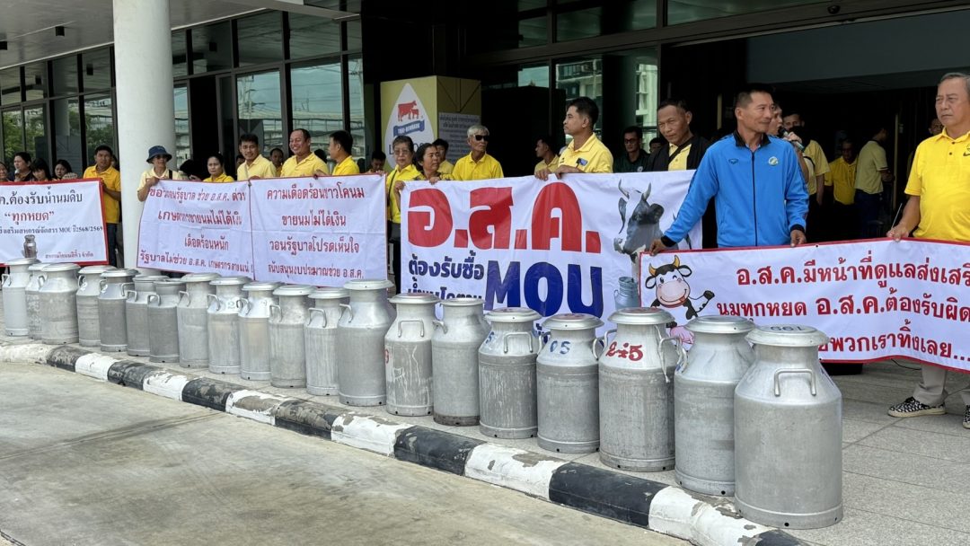 ด้วยชุมนุมสหกรณ์นมไทย – เดนมาร์ค จำกัด ซึ่งมีสหกรณ์สมาชิกที่จัดทำบันทึกข้อตกลงซื้อขายนำนมติบ MOU กับองค์การส่งเสริมกิจการโคนมแห่งประเทศไทย (อ.ส.ค.) สำนักงานเขตภาคกลาง มีความประสงค์จะขอจด MOU เขตภาคกลางจำนวน 15 สหกรณ์ จำนวน 212.279 ตัน/วัน เนื่องด้วยสหกรณ์สมาชิกของชุมนุมสหกรณ์นมไทย – เดนมาร์ค จำกัด จำนวน 15 สหกรณ์ ได้จด MOU ซื้อขายน้ำนมดิบกับ อ.ส.ส.ค. ที่เดียวมาตลอดจึงไม่ได้มีคู่ค้าที่อื่นยืนยันจะขอจด MOU กับ อ.ส.ส.ค.ตามจำนวน 212.279 ตัน/วัน ดังนั้นทางชุมนุมสหกรณ์ จึงขอให้ผู้บริหารพิจารณาหาแนวทางแก้ไขเพื่อจะให้สหกรณ์ได้รับเงินค่าน้ำนมติบตามข้อตกลง MOU คือภายใน 45 วัน และได้รับทราบมาว่า ครม. อนุมัติงบกลาง 800 ล้านบาท เพื่อจัดซื้อนมกล่องที่ค้างสต๊อกอยู่ ซึ่งทาง อ.ส.ค. จะได้รับงบประมาณส่วนนี้มาด้วย จึงอยากให้ทางอ.ส.ค. จัดสรรเงินส่วนนี้มาชำระหนี้ค่าน้ำนมดิบให้สหกรณ์และหากว่าในวันนี้ทางสมาชิกสหกรณ์สมาชิกชุมนุมสหกรณ์นมไทย – เดนมาร์ค จำกัด (เขตภาคกลาง) จำนวน 15 สหกรณ์กว่า 100 รายที่มาในวันนี้ แสดงสัญลักษณ์โดยการเทนมเพื่อประท้วงในเรื่องดังกล่าวและหากจากนี้ไปไม่ได้คำตอบที่ชัดเจนทางสหกรณ์จะรวมตัวกันเดินทางไปทวงถามเรื่องนี้ที่ทำเนียบรัฐบาลต่อไป