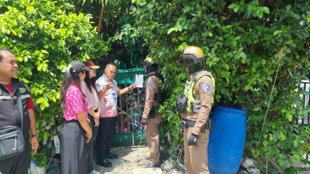 ต่อมา 14.00 น. ทางเจ้าหน้าที่กองสาธารณสุขและสิ่งแวดล้อม เจ้าหน้าที่เทศกิจ และเจ้าหน้าที่ตำรวจสายตรวจ สภ.รัตนาธิเบศร์ กว่า 15 นาย เดินทางไปยังบ้านหลังดังกล่าว และตะโกนเรียกคุณลุงเจ้าของบ้านกับคุณป้าแต่ไม่มีใครขานรับหรือออกมาแต่อย่างใด โดย ร.ต.อ.ธงชัยและป้าแดง ยืนยันว่าคุณลุงอยู่ในบ้านตลอดเวลา มีเพียงคุณป้านุชเท่านั้นที่ออกไปข้างนอกแล้วก็จะกลับมาในช่วงเย็น เจ้าหน้าที่ใช้เวลาเรียกอยู่นานแต่ไร้การตอบรับจากคนที่อยู่ในบ้าน จึงได้ตัดสินใจนำใบเตือน แขวนไว้ที่หน้าบ้าน เพื่อให้ทำการแก้ไขและปรับปรุงภายใน 3 วัน หากไม่ได้รับการตอบรับหรือแก้ไขจากทางเจ้าของบ้าน ในวันที่ 26 กันยายน 68 เจ้าหน้าที่จะนำอุปกรณ์ตัดต้นไม้ มาทำการรื้อถอนและตัดต้นไม้หน้าบ้านทันที เพราะถือว่าได้มีการแจ้งเตือนแล้ว ส่วนต้นไม้ที่อยู่ในบ้าน ในวันนั้นคงต้องเจรจากับทางเจ้าของบ้านอีกทีว่าจะยินยอมให้ตัดหรือไม่ เบื้องต้นคงจะต้องตัดเฉพาะในส่วนของหน้าบ้านที่ล้ำแนวออกมานอกถนนและอยู่ในเขตความดูแลของเทศบาลนครนนทบุรี เพื่อบรรเทาความเดือดร้อนให้กับเพื่อนบ้านไปก่อน