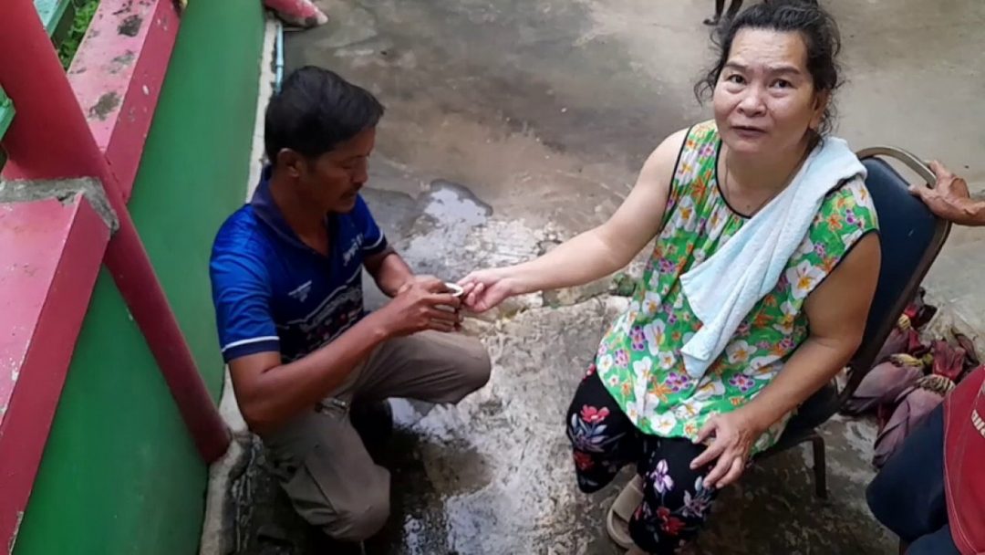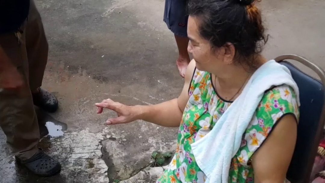 จากการสอบถาม ยายน้ำทิพย์ เล่าให้ฟังว่า ตนเองได้ล้างจานแล้วท่อมันตัน ตนเองจึงการทำซ่อมเองด้วยการถอดท่อใต้ซิ้งค์ล้างจานออกมา แล้วใช้นิ้วแห่ยสิ่งของในท่อออกจนหมด แต่ไม่สามารถนำนิ้วออกมาได้ ที่บ้านก็มีแต่ผู้สูงอายุ สามีและแม่ที่แก่ชรา จึงโทรหา นางสาว รฐา ขอความช่วยเหลือ เบื้องต้นได้ใช้น้ำยาล้างจานซันไลน์ เทไปที่บริเวณนิ้วติดอยู่แล้วพยายามดึงออก แต่ไม่สามารถดึงนิ้วออกมาได้ สุดท้ายจึงใช้เลื้อยตัดเหล็ก ตัดท่อด้านล่างท่อซิ้งค์ล้างจาน นำออกมาได้โดยยังมีนิ้วคาอยู่ที่ท่อ แต่ไม่สามารถตัดท่อออกจากนิ้วได้