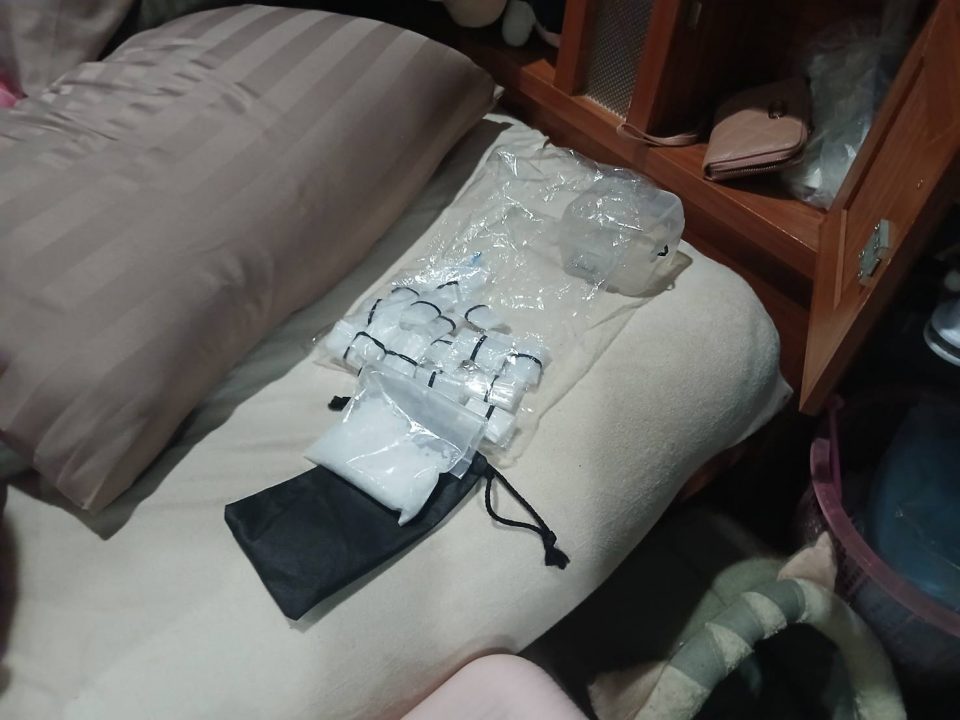 หลังการจับกุม เจ้าหน้าที่ตรวจค้น กระเป๋าสะพาย พบธนบัตรของกลางที่ใช้ล่อซื้อ พร้อมโทรศัพท์มือถืออีกหลายเครื่อง จากนั้นขยายผลบุกตรวจค้นห้องพักหมายเลข 6 หอพักไม่มีชื่อ หมู่ 3 ต.ท่าวังทอง ผลการตรวจค้นพบ ยาเคตามีน เพิ่มเติมอีก 2 ถุงใหญ่ และแบบแบ่งขาย 100 ถุงเล็ก น้ำหนักรวมเกือบ 188.87 กรัม ซุกซ่อนอยู่ในช่องเก็บของบนเตียงนอน