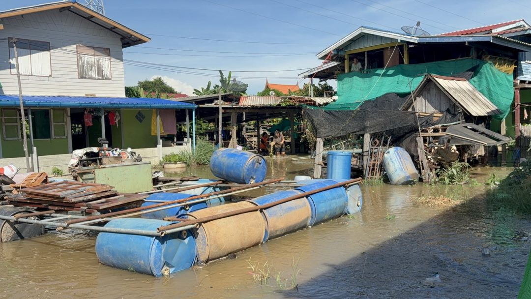 ที่บริเวณคันกั้นน้ำ หมู่ที่ 5 ตำบลโผงเผง อำเภอป่าโมก จังหวัดอ่างทอง กระสอบทรายที่ทำเป็นคันกั้นน้ำเกินแรงต้านน้ำในคลองโผงเผง ที่เพิ่มสูงขึ้นอย่างต่อเนื่อง ทำให้กระสอบทรายพังทลายกว้างประมาณ 4 เมตร ทำให้น้ำในคลองโผงเผงไหลทะลักเข้าหมู่บ้านในพื้นที่กว่า 200 หลังคาเรือน อย่างรวดเร็ว ชาวบ้านต่างเร่งขนของหนีน้ำขึ้นไว้ชั้น 2 ของบ้าน ส่วนบ้านชั้นเดียวก็ต้องเร่งขนของขึ้นไปไว้บนถนน เพื่อเป็นที่พักอาศัยชั่วคราว