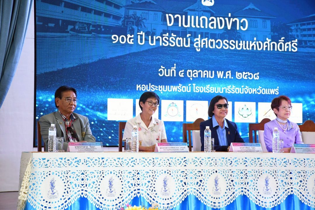 ที่หอประชุมนพรัตน์ โรงเรียนนารีรัตน์จังหวัดแพร่ อำเภอเมืองแพร่ จังหวัดแพร่ โรงเรียนนารีรัตน์จังหวัดแพร่ ร่วมกับ 6 องค์กรภาคีเครือข่าย แถลงข่าวเตรียมจัดงานเฉลิมฉลองครบรอบ “105 ปี นารีรัตน์ สู่ศตวรรษแห่งศักดิ์ศรี” ซึ่งจะจัดขึ้นในปี พ.ศ. 2569 เพื่อเป็นการเฉลิมฉลองวาระสำคัญที่โรงเรียนจะก้าวเข้าสู่ปีที่ 105 และเพื่อสร้างความภาคภูมิใจให้กับศิษย์เก่า ศิษย์ปัจจุบัน รวมถึงประชาชนชาวจังหวัดแพร่