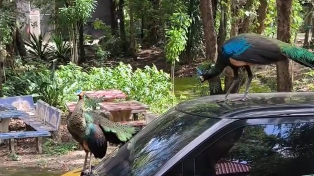 ผู้สื่อข่าวรายงานว่าสายมูแห่ส่องทะเบียนรถ ที่วัดถ้ำเทพนิมิตร ตำบลห้วยลาน อำเภอดอกคำใต้ จังหวัดพะเยา หลังพบนกยูงสีเขียวตัวใหญ่ เดินวนอยู่รอบรถยนต์ไฟฟ้าสีเหลืองทองสดใส ก่อนที่อีกตัวหนึ่งจะกระโดดขึ้นไปยืนเด่นบนหลังคารถโดยไม่ยอมไปใหน ส่วนด้านหลังยังมี แมวสีขาวลายส้ม มานั่งเฝ้ารถคันเดียวกัน หลังจากเจ้าของขับมาทำบุญที่วัดสร้างความฮือฮาให้กับผู้ที่มากราบไหว้ทำบุญในวัดเป็นอย่างมากเชื่อกันว่านกยูงและแมวมามอบโชคลาภต่างพากันส่องทะเบียนรถคันดังกล่าว