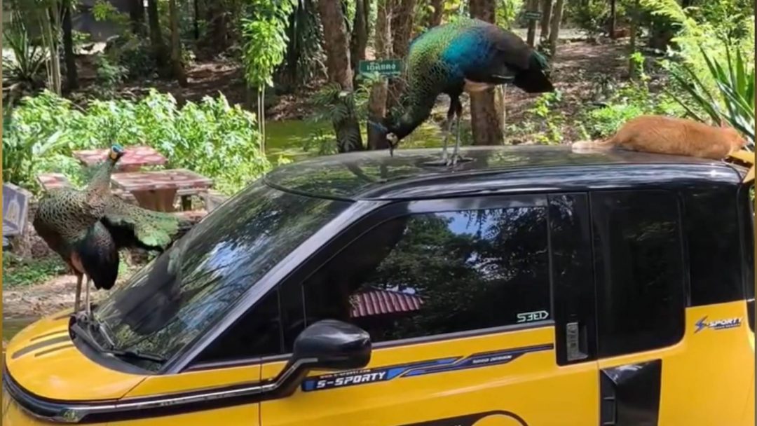 รถคันดังกล่าวเป็นรถไฟฟ้ารุ่นใหม่สีเหลืองทอง ซึ่งมีเลขทะเบียน กธ 634 พะเยาซึ่งเจ้าของได้ขับมาทำบุญที่วัดถ้ำเทพนิมิตร ซึ่งวัดดังกล่าวเป็นข่วงชมนกยูงที่ขึ้นชื่อของจังหวัดพะเยาและมีนกยูงจำนวนมากแต่ไม่เคยมีนกยูงที่จะมาขึ้นเกาะจับบนรถแบบนี้มาก่อนโดยชาวบ้านที่เห็นเชื่อว่าเป็น รถนำโชค เพราะสีเหลืองทองถือเป็นสีแห่งความมั่งคั่ง โชคลาภ และพลังแห่งแสงบุญ อีกทั้งการที่นกยูงขึ้นไปเกาะบนรถ ยังสื่อถึง พระศรีมหาโพธิสัตว์ ตามความเชื่อโบราณที่นกยูงเป็นสัตว์สื่อสารกับสิ่งศักดิ์สิทธิ์ นำพาความรุ่งเรืองและความสำเร็จมาสู่เจ้าของ