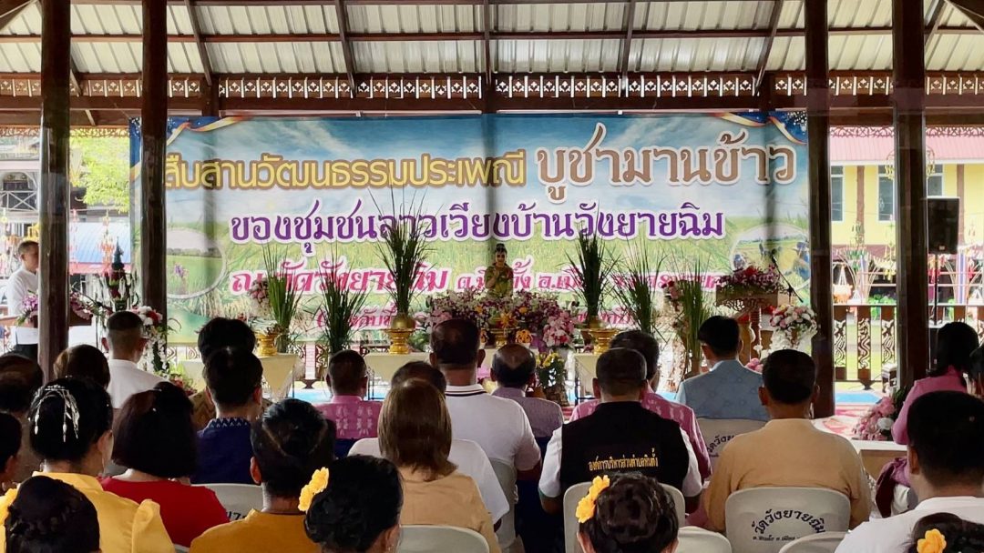 ที่ศาลาไม้ยองหิน วัดวังยายฉิม ตำบลหินตั้ง อำเภอเมือง จังหวัดนครนายก นายธนวัฒน์ ปิ่นแก้ว รองผู้ว่าราชการจังหวัดนครนายก เป็นประธานในพิธีสืบสานวัฒนธรรมประเพณี “บูชามานข้าว” ของชุมชนลาวเวียงบ้านวังยายฉิม โดยมี พระมหาพิทักษ์ คุณากโร เจ้าอาวาสวัดวังยายฉิม เป็นประธานสงฆ์ พร้อมพระสงฆ์ทรงสมณศักดิ์ 5 รูป เจริญพระพุทธมนต์ นางสมปอง เสนา นายกองค์การบริหารส่วนตำบลหินตั้ง กล่าวรายงานการจัดงาน พร้อมด้วย นายกองโท อิศรา สุขแจ่มใส ปลัดจังหวัดนครนายก นายอำเภอเมืองนครนายก หัวหน้าส่วนราชการ ผู้นำท้องถิ่น ผู้นำชุมชน ชาวบ้านชุมชนลาวเวียงบ้านวังยายฉิม และพื้นที่ใกล้เคียง ร่วมพิธีจำนวนมาก ในพิธีมีการรำต้อนรับประธานในพิธี และรำถวายพระแม่โพสพ พิธีบูชามานข้าว พิธีบายศรีสู่ขวัญและผูกแขนสู่ขวัญให้แก่ประธานในพิธีและแขกผู้มีเกียรติ ชมการแสดงรำพื้นถิ่นจากชุมชนลาวเวียงบ้านวังยายฉิม ชุมชนบ้านวังรี ชุมชนบ้านคีรีวัน ไทย-พวน อำเภอปากพลี และเยี่ยมชมหัตถกรรมพื้นบ้านพร้อมร่วมรับประทานอาหาร “ข้าวแลง” ของท้องถิ่นที่เป็นเอกลักษณ์ของคนลาวเวียงบ้านวังยายฉิม ที่หาทานได้ยาก