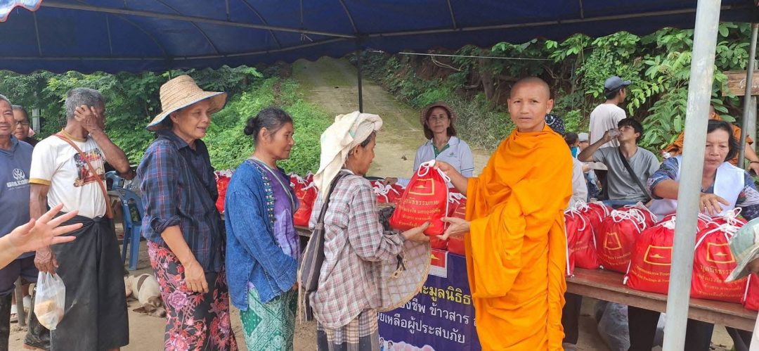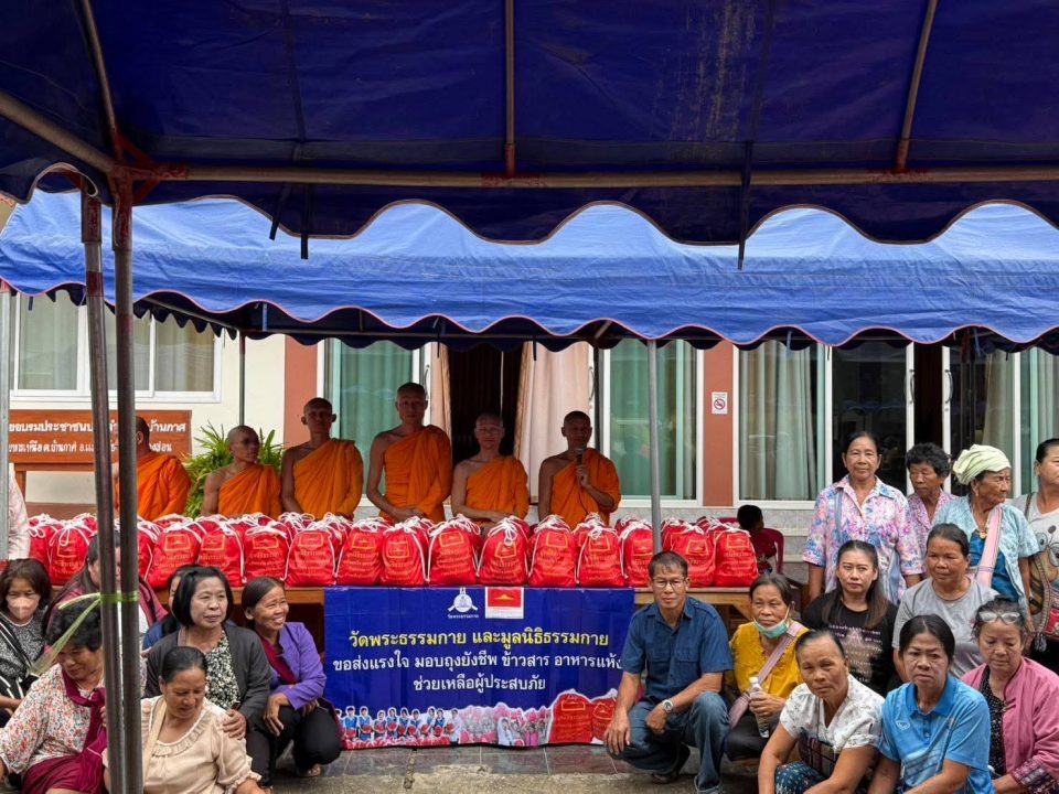 พระครูปลัดรัตนวีรวัฒน์ เจ้าอาวาสวัดพระธรรมกาย มอบหมายให้พระสุรชัย สุรธมฺโม ประธานสงฆ์ศูนย์ปฏิบัติธรรมขุนยวม มอบถุงยังชีพบรรจุข้าวสารอาหารแห้งจำนวน 600 ชุด แก่ประชาชนผู้ได้รับผลกระทบจากอุทกภัยน้ำป่าไหลหลากและดินถล่มในพื้นที่อำเภอแม่สะเรียง จังหวัดแม่ฮ่องสอนเป็นสาธารณสงเคราะห์ โดยได้ตั้งจุดมอบความช่วยเหลือในวัดและชุมชนกลางหมู่บ้าน ซึ่งบางจุดเป็นพื้นที่ห่างไกลความช่วยเหลือยังเข้าไม่ถึง และบางพื้นที่อยู่ในระหว่างการฟื้นฟูเก็บกวาดที่พักอาศัยให้กลับมาอยู่ในสภาพใช้งานได้