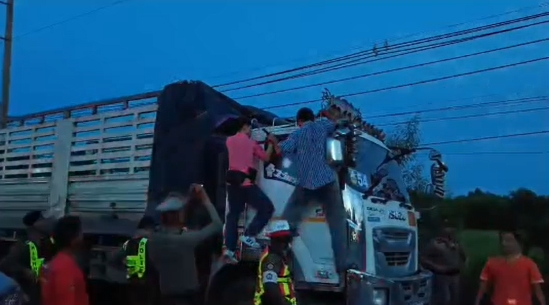 @chaijexu ชัยภูมิ ตำรวจไล่ล่าระทึกรถ18ล้อพ่วงซิ่งหนีแหกด่าน อ้างเหตุแหกด่านเพราะกลัวไฟแนนซ์ยึดรถ ตำรวจ สภ.หนองบัวโคก พร้อมตำรวจทางหลวง ไล่ล่าติดตามรถบรรทุก 18ล้อแหกด่านตรวจ จาก ต.หนองบัวโคกอ.จัตุรัส จ.ชัยภูมิ แม้เจ้าหน้าที่ยิงยางสกัดไว้ยังเอาไม่อยู่ เจ้าหน้าที่ตำรวจหนองบัวโคกจึงได้วิทยุประสานมาทางสถานีตำรวจภูธรบำเหน็จณรงค์ให้ช่วยออกสกัดจับรถ18ล้อพ่วง ยี่ห้อ isuzu สีขาว ทะเบียนตัวแม่ 84-0150 ชัยภูมิ ส่วนลูกพ่วงทะเบียน 84- 0151 ชัยภูมิ ได้วิ่งรถหลบหนีมาถนนสุรนารายณ์ 205วิ่งข้ามอำเภอ กระทั่งเจ้าหน้าที่ตำรวจติดตามอย่างกระชั้นชิดและสกัดรถไว้ได้ ที่บริเวรหน้าร้านต้นเนื้อย่าง ก่อนถึงสี่แยกคำปิง อ.บำเหน็จณรงค์ จชัยภูมิ แต่คนขับก็ยังไม่เปิดรถลงมาหาเจ้าหน้าที่ฯเจ้าหน้าที่ตำรวจใช้เวลาเกลี้ยกล่อมอยู่นานกว่า 2 ชั่วโมง จึงตัดสินใจ งัดกระจกรถและเปิดประตู และควบคุมตัวคนขับรถสิบล้อได้ ทราบชื่อคือนายทรงพล มาป้อง อายุ 31 ปี บ้านเลขที่ 22/1 ม.13 ตำบลวังตะเข้ อำเภอหนองบัวระเหว จังหวัดชัยภูมิคนขับสิบล้อให้การกับเจ้าหน้าที่ตำรวจ ว่าตนเองกลังไฟแนน์จะมายึดเอารถจึงต้องขับรถหนีด่านตำรวจ จากการค้นภายในรถไม่พบสิ่งผิดกกหมาย พบเพียงขวดน้ำเปล่า มีสีขุ่นๆติดอยู่ในขวดคล้ายน้ำกระท่อม วางอยู่ในรถดังกล่าวด้วย เจ้าหน้าที่ตำรวจจึงแจ้งข้อกล่าวหา ขับรถหนีจากด่านตรวจ และขับรถประมาทหวาดเสียว เกรงจะเกิดเหตุอันตรายกับผู้ใช้รถใช้ถนน สอบถาม คนขับรถคันดังกล่าวเล่าว่า ตนเองก็ขับรถมาปกติและ มาเจอด่านที่เขต ต.หนองบัวโคก เจ้าหน้าที่เรียกตรวจ ตนเองก็จอดให้ตรวจ แต่ตนเองก็ตกใจกลัวว่าไฟแนนซ์จะให้ตำรวจช่วยเรียกรถไว้เพื่อจะให้ไฟแนนซ์มาตามยึดรถ ตัวเองก็เลยขับรถหนีจากด่านมา โดยใช้เส้นทางหนองบัวโคก-จัตุรัส วิ่งมาทางบ้านงิ้วบ้านขาม ออกมายังตำบลหัวทะเล แล้วก็มาโดนตำรวจสถานีภูธรบำเหน็จณรงค์เรียกตรวจเพื่อสกัดจับ ตนเองก็เลยต้องมาจอดอยู่ตรงร้านต้นเนื้อย่างช่วงถนนสุรนารายณ์เส้น 205 คำปิงตำบลบ้านเพชร อำเภอบำเหน็จณรงค์ จังหวัดชัยภูมิ ในระหว่างหนีมาก็รู้ว่ามีเจ้าหน้าที่ตำรวจติดตามมาตนเองกลัวว่าจะโดนไฟแนนซ์ตามยึดก็ขับรถหนีอย่างเดียว ว่าตนเองเสียดายรถคันนี้ผ่อนมาแล้วประมาณ 3 ล้านกว่าบาท ติดงวดอยู่ประมาณ 5 งวดตนเองไม่รู้จะทำยังไง ทางด้านพนักงานสอบสวน สภ.หนองบัวโคก ได้แจ้งข้อกล่าวหากับผู้ที่ขับขี่รถพ่วงและควบคุมตัวไปยังสถานีตำรวจภูธรหนองบัวโคกเพื่อดำเนินคดีต่อไป/ ภาพ-ข่าว วิรัตน์ ดวงแก้ว ผู้สื่อข่าว จ.ชัยภูมิ