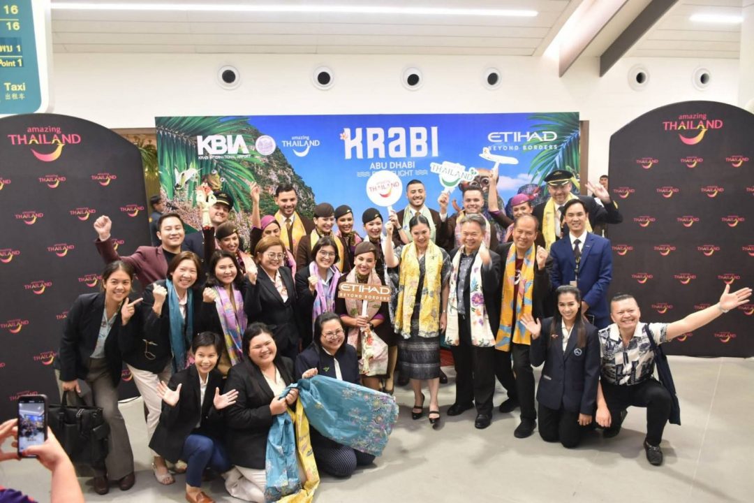 ที่ท่าอากาศยานนานาชาติกระบี่ นายพิพัฒน์ รัชกิจประการ รองนายกรัฐมนตรี และรัฐมนตรีว่าการกระทรวงคมนาคม นางสาวศศิธร กิตติธรกุล รัฐมนตรีช่วยว่าการกระทรวงมหาดไทย พร้อมด้วย นายชยธรรม์ พรหมศร ปลัดกระทรวงคมนาคม นายรัฐศาสตร์ ชิดชู ผู้ว่าราชการจังหวัดกระบี่ นางสาวฐาปนีย์ เกียรติไพบูลย์ ผู้ว่าการการท่องเที่ยวแห่งประเทศไทย(ททท.) นายสมศักดิ์ กิตติธรกุล นายกองค์การบริหารส่วน จังหวัดกระบี่ นายเอกพงศ์ โชคชัยวิทัศน์ ประธานหอการค้าจังหวัดกระบี่ หน่วยภาครัฐและเอกชนด้านการท่องเที่ยวในพื้นที่จังหวัดกระบี่ ให้เกียรติร่วมให้การต้อนรับเที่ยวบินปฐมฤกษ์ของสายการบินเอทิฮัด (Etihad Airways ) เที่ยวบิน EY424 ที่เปิดบินตรงจากกรุงอาบูดาบี สหรัฐอาหรับเอมิเรตส์ (UAE) กับท่าอากาศยานนานาชาติกระบี่ ณ ท่าอากาศยานนานาชาติกระบี่ โดย ททท.จัดแสดงมโนราห์ร่วมให้การต้อนรับ พร้อมมอบของที่ระลึกแก่ผู้โดยสาร และเจ้าหน้าที่ของสายการบินด้วย.