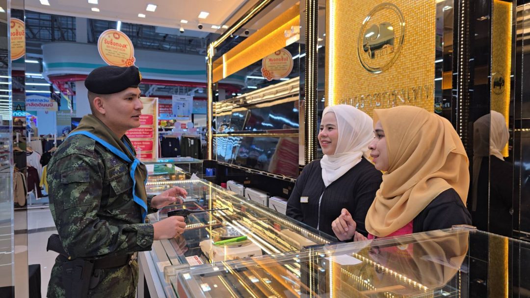 นอกจากนี้แล้วยังได้ถือโอกาสติดตาม ร.อ.ธนพนธ์ ผู้บังคับกองร้อยป้องกันชายแดนที่ 5 เดินทางไปยังห้างบิ๊กซีสาขาสุไหงโก-ลก เพื่อเยี่ยมให้กำลังใจพนักงานร้านทองเยาวราชกรุงเทพ ซึ่งได้เปิดร้านตั้งแต่วันที่ 9 ต.ค.68 ที่ผ่านมา แต่ยังไม่ได้นำทองรูปพรรณมาวางจำหน่าย แต่เป็นการเปิดโอกาสให้ลูกค้าที่นำทองรูปพรรณมาจำนำกับทางร้าน ในการนำเอกสารหลักฐานที่ทางร้านออกให้มาตรวจสอบ ว่าทองรูปพรรณที่นำมาจำนำกับทางร้าน ได้ถูกคนร้ายบุกปล้นไปจำนวน 540 บาทนั้นซึ่งทองรูปพรรณที่ลูกค้าเอามาจำนำได้ถูกคนร้ายเอาไปด้วยหรือไม่ หากพบว่าถูกโจรบุกปล้นนำไปด้วยทางร้านจะชดเชยค่าเสียหายให้ทุกบาททุกสตางค์