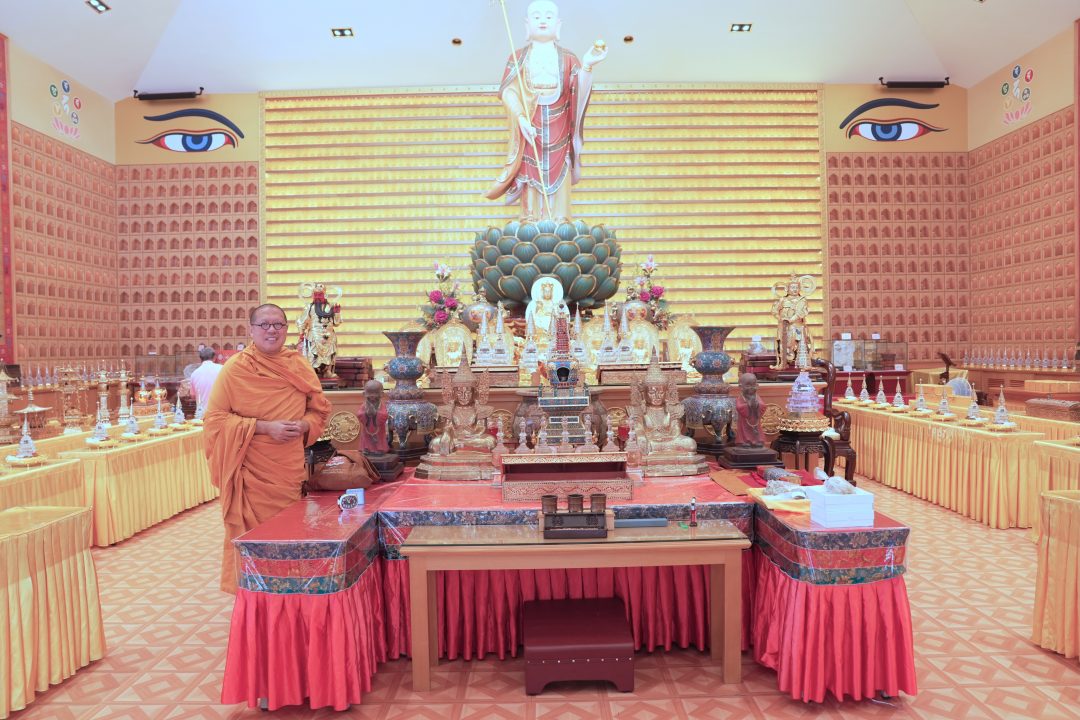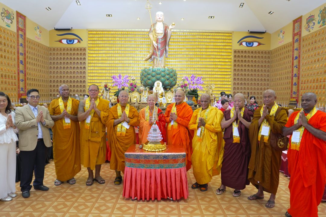 โดยในพิธีซึ่งกำหนดตั้งแต่ช่วงเช้าตรู่ของวันที่ 5 ตุลาคม 68 คณะสงฆ์จากนานาชาติ ได้เคลื่อนอัญเชิญพระบรมสารีริกธาตุและพุทธมงคลวัตถุ เข้าสู่ห้องโถงพิธีการจากนั้นได้ร่วมกันเจริญพระพุทธมนต์เพื่อน้อมถวายสักการะและขอพรอันเป็นมงคลให้แก่ผู้เข้าร่วมพิธีซึ่งประกอบด้วยพุทธศาสนิกชนจากประเทศไต้หวัน ประเทศไทย ประเทศมาเลเซีย ประเทศเมียนมาร์ และอีกหลายชาติ ซึ่งพร้อมใจกันเข้าร่วมพิธีดังกล่าว