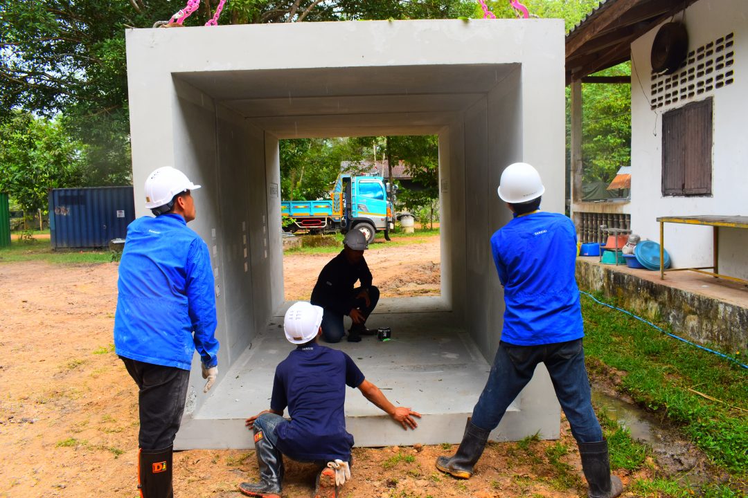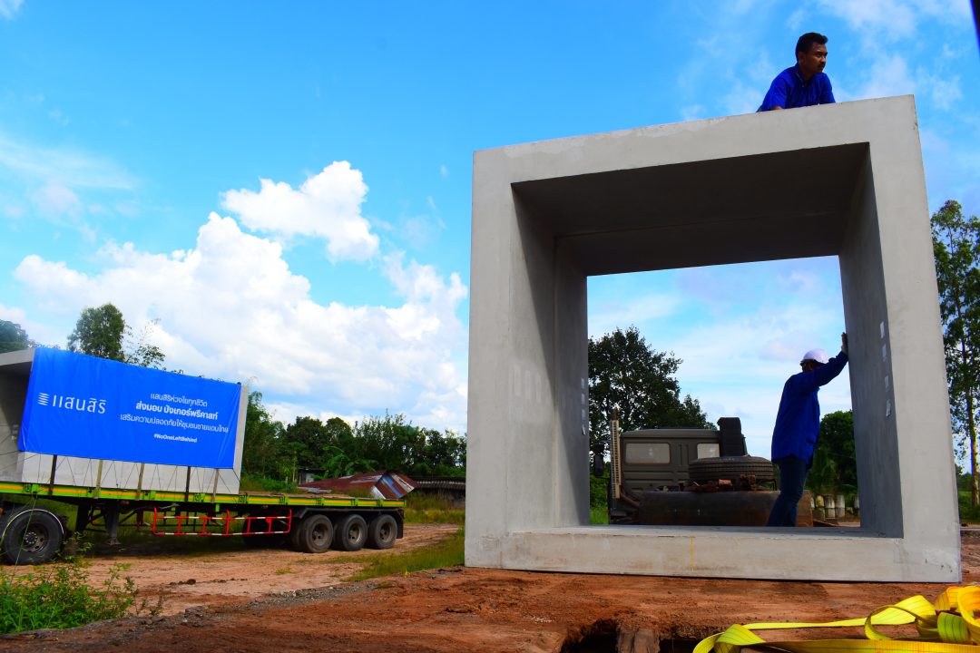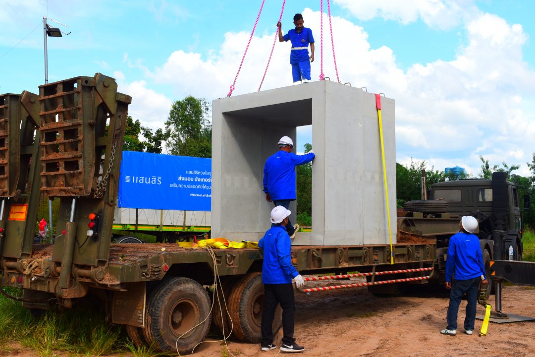 ท่ามกลางบรรยากาศความไม่แน่นอนนี้ ภาคเอกชนรายใหญ่ด้านอสังหาริมทรัพย์ “บริษัท แสนสิริ จำกัด (มหาชน)” ได้นำเทคโนโลยีการก่อสร้างระดับสูงเข้ามาช่วยเสริมความมั่นคงให้แก่ชายแดนไทย ผ่านโครงการติดตั้ง “บังเกอร์นวัตกรรม” ให้กับหน่วยทหารที่ปฏิบัติหน้าที่แนวหน้าของประเทศ รวมถึงชุมชนในพื้นที่เสี่ยงของจังหวัดศรีสะเกษ เพื่อเป็นเกราะป้องกันภัยและเป็นสัญลักษณ์แห่งกำลังใจให้แก่เจ้าหน้าที่และประชาชนในพื้นที่ชายแดน สำหรับ “บังเกอร์นวัตกรรม” ที่แสนสิริพัฒนาขึ้นครั้งนี้ ไม่ได้เป็นเพียงที่กำบังทั่วไป แต่ถูกออกแบบด้วยเทคโนโลยีล่าสุดจากโรงงาน พรีคาสท์ (Precast Factory) ของแสนสิริ โดยใช้วัสดุหลักคือ “แผ่นกรีนพรีคาสท์ (Green Precast)” ซึ่งเป็นแผ่นคอนกรีตสำเร็จรูปเสริมเหล็กที่พัฒนาขึ้นเป็นพิเศษ มีความแข็งแรง ทนต่อแรงกระแทกและแรงระเบิดในระยะไกลได้อย่างมีประสิทธิภาพด้วยโครงสร้างแน่นหนา เสริมเหล็กอย่างเป็นระบบ และผ่านกระบวนการผลิตที่เป็นมิตรต่อสิ่งแวดล้อม แผ่นกรีนพรีคาสท์จึงช่วยลดอุณหภูมิภายใน ทำให้ผู้ปฏิบัติงานอยู่ภายในบังเกอร์ได้อย่างสบายมากขึ้น อีกทั้งยังสามารถดัดแปลงใช้เป็นที่พักอาศัยหรือพื้นที่ใช้สอยอื่นในอนาคตได้ตามความเหมาะสม ถือเป็นนวัตกรรมที่ตอบโจทย์ทั้ง “ความปลอดภัย” และ “ความยั่งยืน” โดยภารกิจติดตั้งบังเกอร์ครั้งนี้ ทีมจิตอาสาแสนสิริร่วมกับทีมช่างติดตั้งจากโรงงานพรีคาสท์ ได้ลงพื้นที่จังหวัดศรีสะเกษ เร่งดำเนินการติดตั้งบังเกอร์ในจุดยุทธศาสตร์ต่าง ๆ เพื่อให้พร้อมใช้งานในทันที