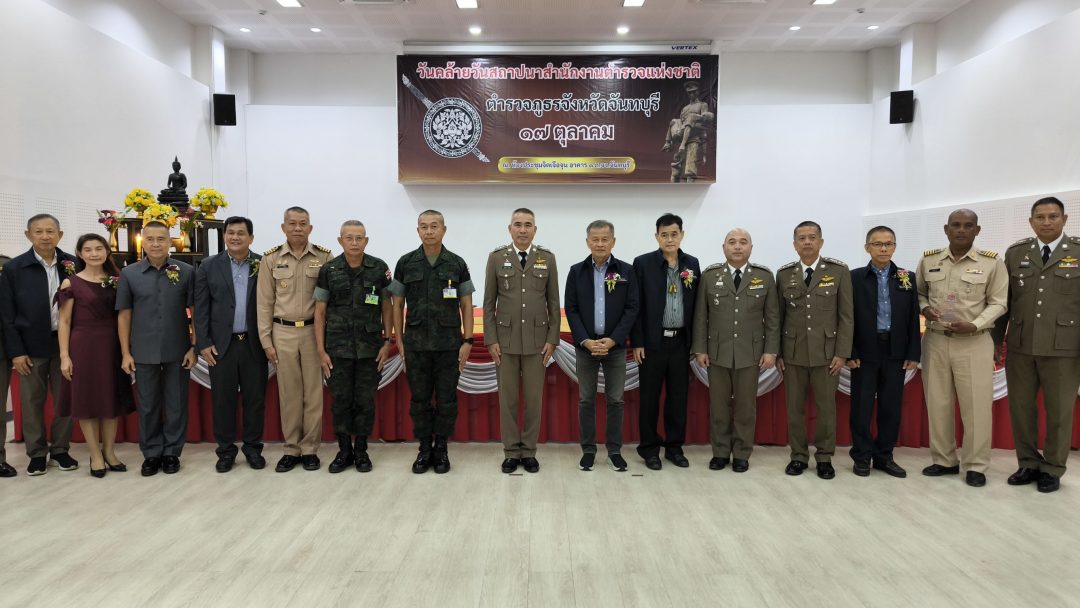 ผบก.ภ.จว.จันทบุรี,พล.ร.ต.วีรชัย หลีค้า รองผบ.กปช.จต.,นาวาเอกอุดม กุลศิริปัญโญ เสนาธิการ กปช.จต.,พร้อมหัวหน้าส่วนราชการ คณะกรรมการ กต.ตร.และแขกผู้มีเกียรติ ร่วมในพิธี พร้อมกรวดน้ำอุทิศส่วนกุศลให้กับข้าราชการตำรวจ ที่เสียชีวิตจากการปฏิบัติหน้าที่หลังจากนั้นมีพิธีมอบประกาศเกียรติบัตรข้าราชการตำรวจดีเด่น 5 สายงาน พร้อมมอบโล่ประกาศเกียรติคุณให้กับผู้มีอุปการะคุณ แก่ตำรวจภูธรจังหวัดจันทบุรี .