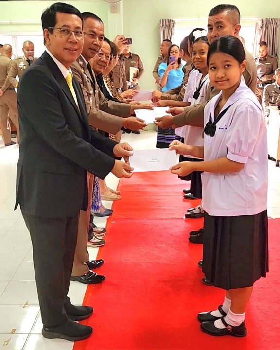 เวลา 11.00น. พ.ต.อ.ชูเกียรติ แก้วอาจ ผกก.สภ.หมูสี พร้อมด้วย นายวรวุฒิ อ้นอารี ประธานคณะกรรมการ (กต.ตร.) สภ.หมูสี และคณะกรรมการ กต.ตร.และคณะที่ปรึกษา จัดพิธีมอบทุนการศึกษาแก่เยาวชนบุตรข้าราชการตำรวจ สภ.หมูสี จากเงินกองทุนที่คณะกรรมการ กต.ตร.ได้บริจาคเข้ากองทุน 38 ทุน โดยมี น.ส.พลอยริญญา ภัทรอิ่มอ้วน ผู้บริหารโรงแรมบ้านปลายฟ้า เขาใหญ่ ร่วมมอบและสมทบทุนการศึกษาในครั้งนี้ด้วย