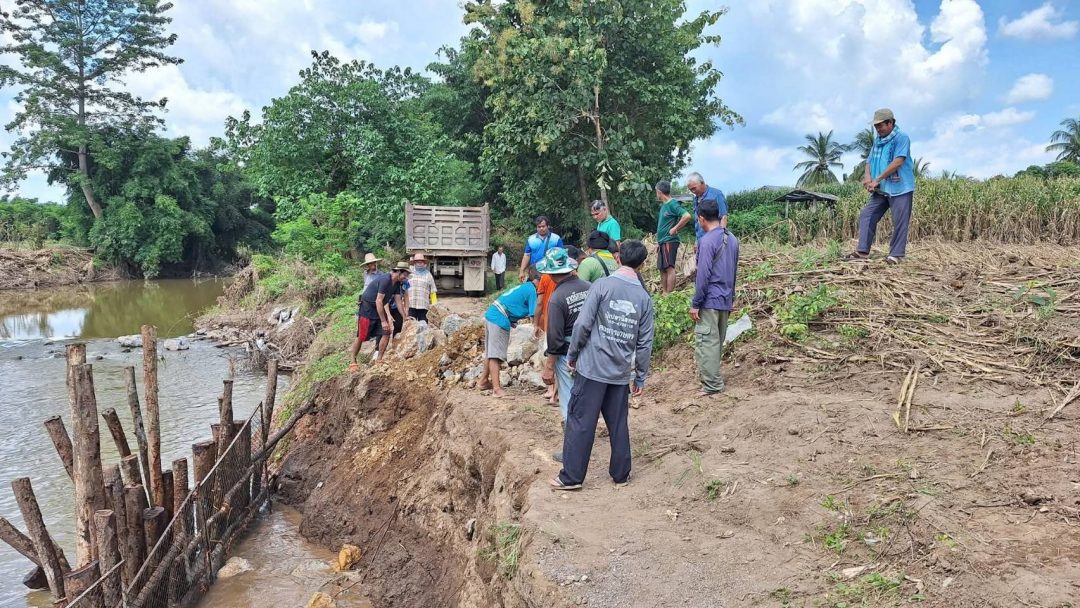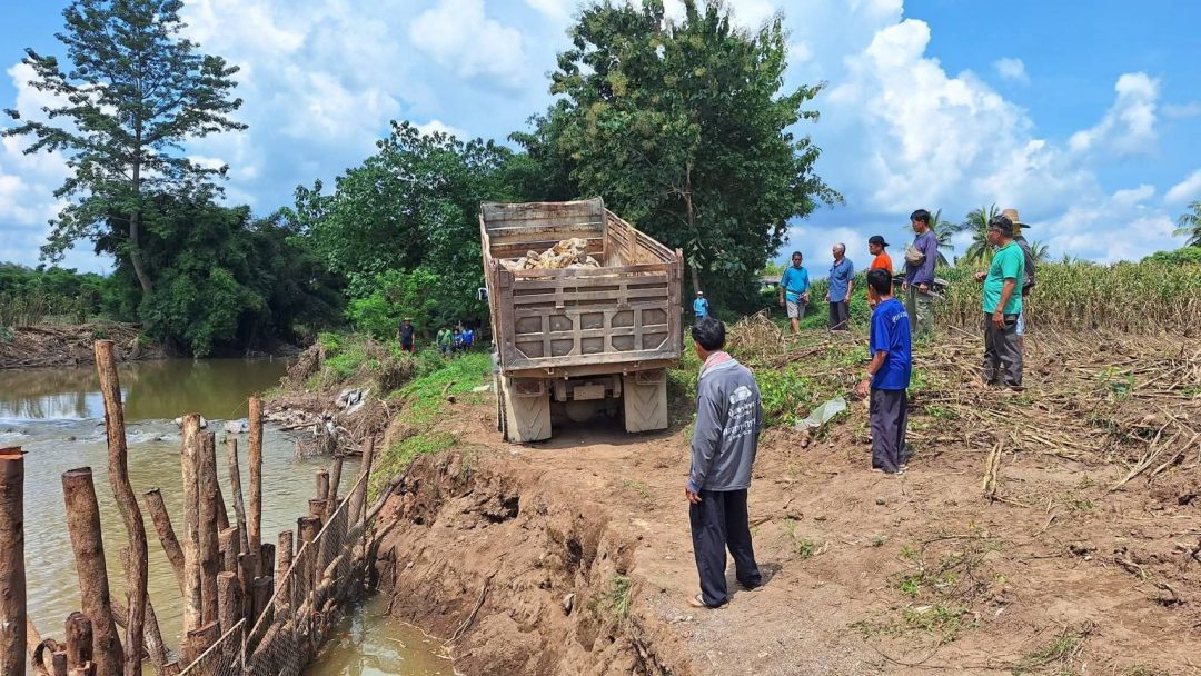 ทางองค์การบริหารส่วนตำบลต้าผามอก อำเภอลอง จังหวัดแพร่ นางพิกุล เอี่ยมพงษ์ นายกองค์การบริหารส่วนตำบลต้าผามอก มอบหมายให้ นายสงกรานต์ ปัญญาใจ รองนายกองค์การบริหารส่วนตำบลต้าผามอก พร้อมคณะบริหาร สมาชิกสภา ฝ่ายปกครอง พี่น้องชาวบ้าน บ้านศรีล้อม หมู่ที่ 8 ตำบลต้าผามอกฯ มีความสามัคคี ช่วยกันตั้งแต่ ตัดไม้ทำเป็นเสาเข็ม และช่วยกันทำแนวกั้น เลาะริมตลิ่ง