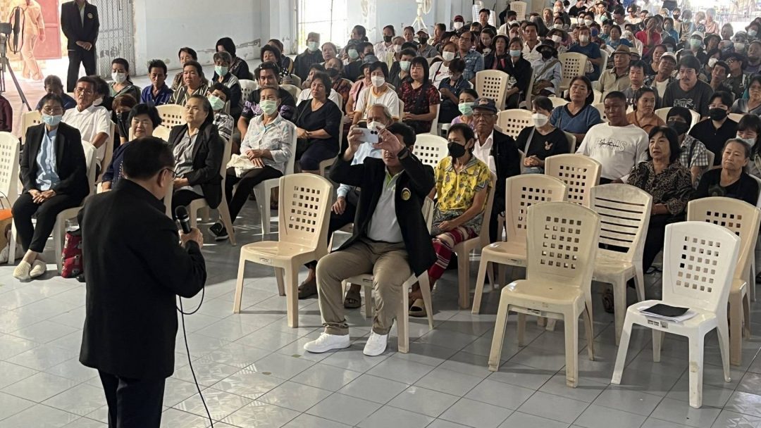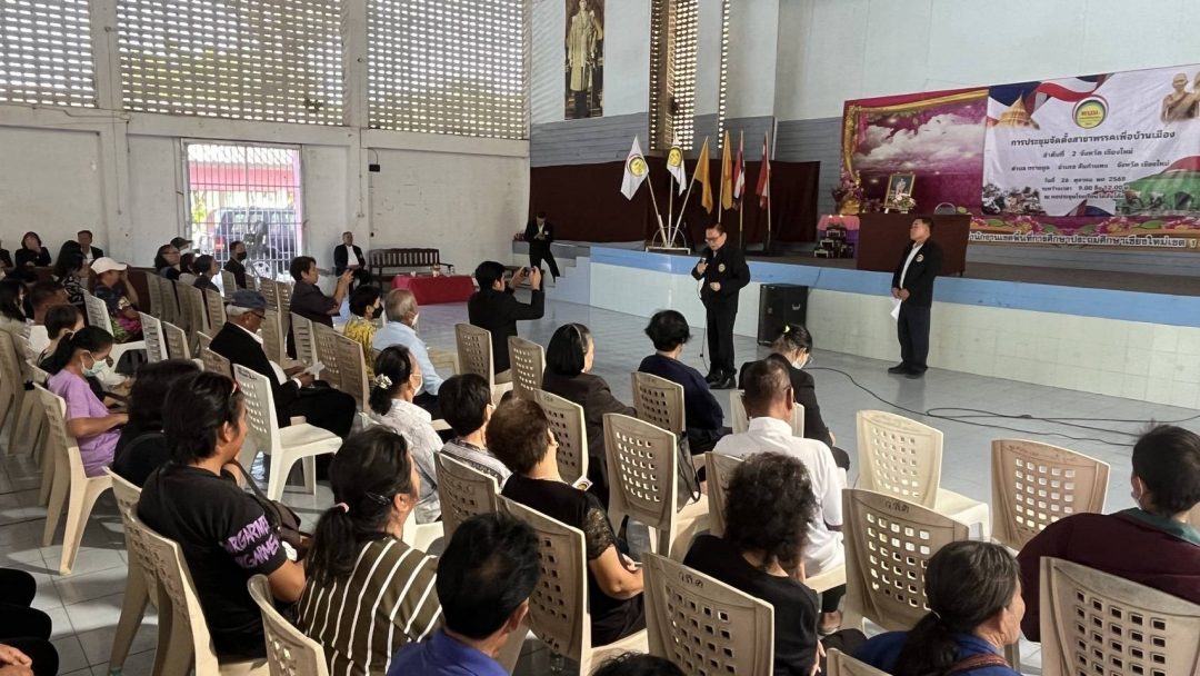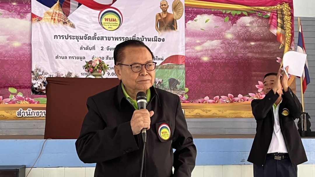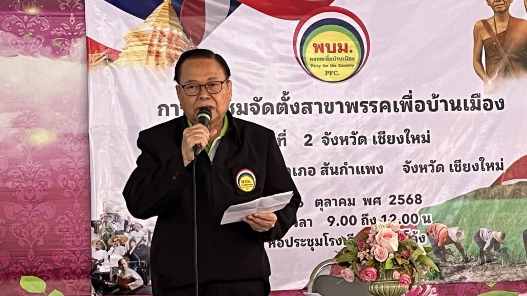นายประสพ บุษราคัม หัวหน้าพรรคเพื่อบ้านเมือง กล่าวกับชาวบ้านในช่วงเปิดการประชุม ว่า ตนเป็นนักกฎหมาย เป็นนักการเมือง 6 สมัย เป็นประธานกรรมาธิการการต่างประเทศ เคยเป็น รมช.เกษตรฯ รอเวลาที่จะเป็นหัวหน้าพรรคมานาน 50 ปี เคยทำงานกับ พลตรี หม่อมราชวงศ์ คึกฤทธิ์ ปราโมช และพลเอกชาติชาย ชุณะวัณ และเคยทำงานกับอดีตนายทักษิณ ชินวัตร มาแล้ว วันนี้พร้อมเป็นหัวหน้าพรรค และตั้งพรรคเมื่อวันที่ 7 ต.ค.68 นี้ ชื่อพรรคเพื่อบ้านเมือง หรือ พบม. เกิดมาได้จากมีป้าคนหนึ่งให้ทำงานเพื่อบ้านเมือง ย้ำ “ทำงานเพื่อบ้านเมือง” เลยเป็นที่มาของการก่อตั้งพรรคเพื่อบ้านเมือง (พบม.)