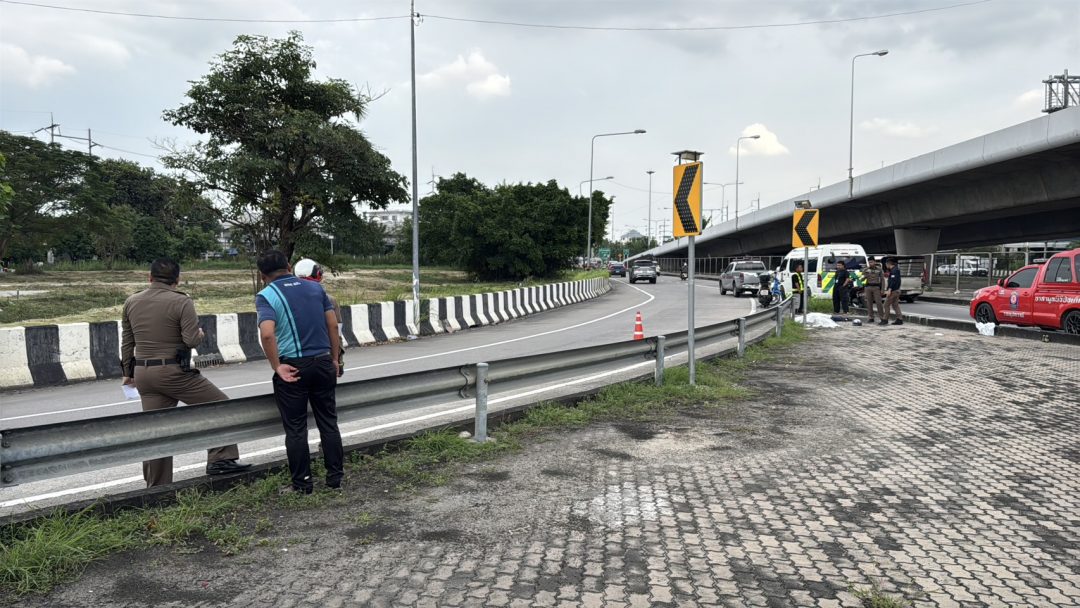 ตำรวจสภ.ปลายบาง ได้รับแจ้งเหตุรถจักรยานยนต์เสียหลักพลิกคว่ำ มีผู้เสียชีวิต 1 ราย บริเวณโค้งต่างระดับบางคูเวียง มุ่งหน้าถนนนครอินทร์ ตำบลบางคูเวียง อำเภอบางกรวย จังหวัดนนทบุรี จึงพร้อมด้วยอาสาสมัครมูลนิธิป่อเต็กตึ๊งและทีมแพทย์สถาบันนิติวิทยาศาสตร์เดินทางเข้าตรวจสอบ ที่เกิดเหตุพบร่างผู้เสียชีวิตทราบชื่อภายหลังคือ นายจักรฐบดิณทร์ ภูมิณัขชะโชติพงษ์ เสียชีวิตอยู่ริมฟุตปาธเกาะกลางถนน