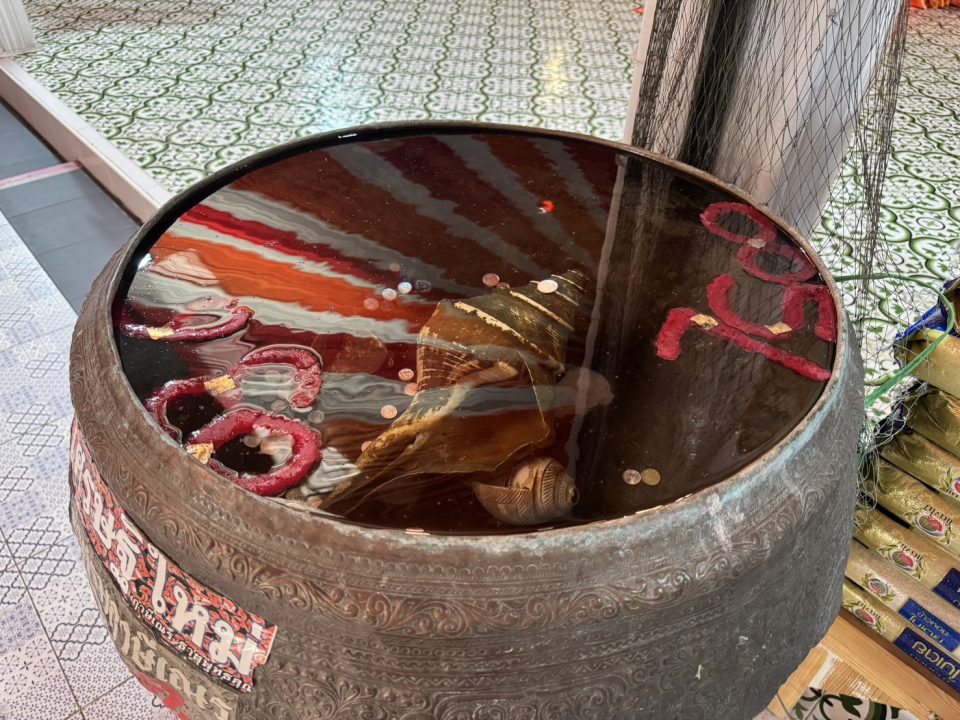 โดยสิ่งของต่างๆที่มาแก้บนทั้งหมดทางอาศรมจะนำไนปบริจาคให้ทางโรงเรียน วัด โรงพยาบาล มูลนิธิต่างๆเพื่อนำไปใช้ประโยชน์ต่อไป ก่อนกลับหลายคนยังได้ไปส่องเลขอ่างน้ำมนต์หน้าองค์ปู่ฤาษีพรหมเมศเพื่อนำไปเสี่งโชคโดยเลขอ่างน้ำมนได้แก่ 0 1 3 5 8 9 ที่ลอยวนจับคู่กันเรียกว่าเทวะบันดาล