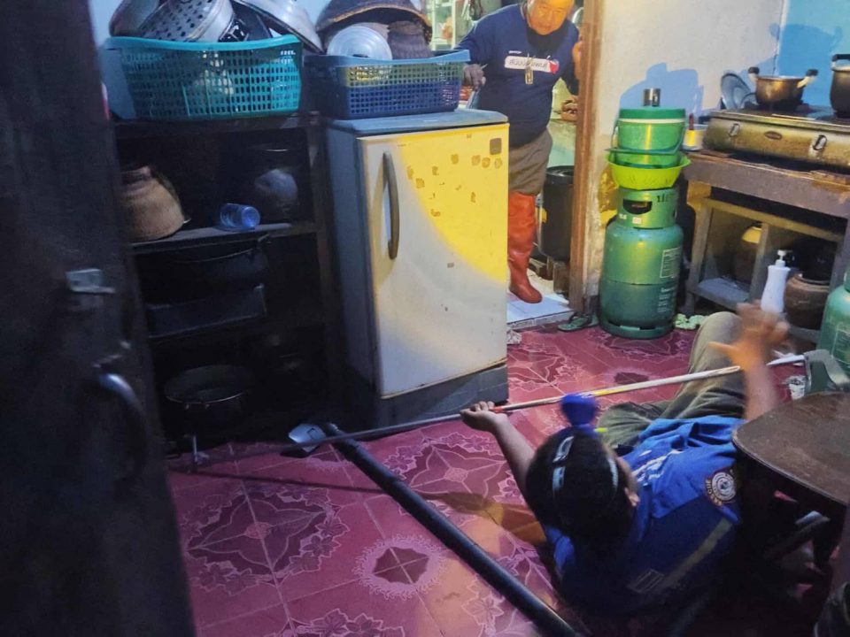 หน้าที่กู้ชีพกู้ภัยกวนอู สำนักงานใหญ่ อำเภอจุน จังหวัดพะเยา ได้รับแจ้งจากชาวบ้านขอความช่วยเหลืองู เข้าบ้านภายในห้องครัว บ้านน้ำริน หมู่ที่ 13 ตำบลทุ่งรวงทอง อำเภอจุน จังหวัดพะเยา เจ้าหน้าที่กู้ภัยจึงนำอุปกรณ์จับสัตว์เลื้อยคลานเดินทางไป