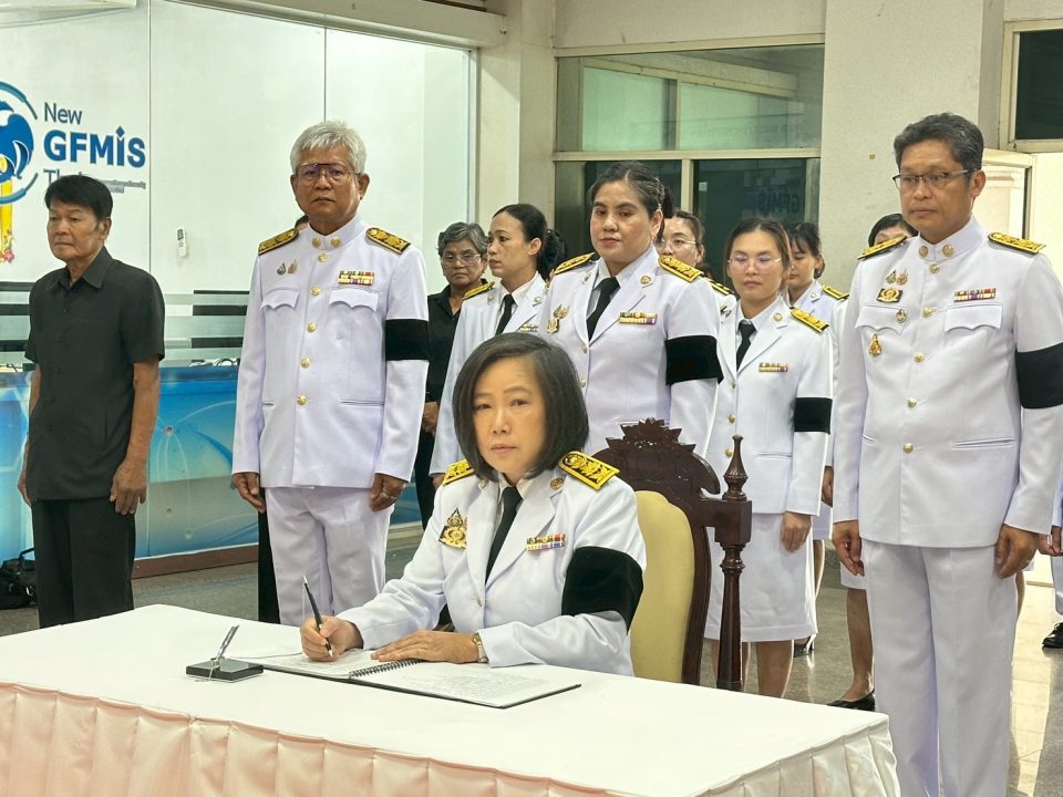 พิธีลงนามถวายความอาลัย และถวายความเคารพเบื้องหน้าพระบรมฉายาลักษณ์ สมเด็จพระนางเจ้าสิริกิติ์ พระบรมราชินีนาถ พระบรมราชชนนีพันปีหลวง โดยมีนางสาวสุกิจจา วานิชพงษ์พันธุ์ ประกันสังคมจังหวัดนครปฐม