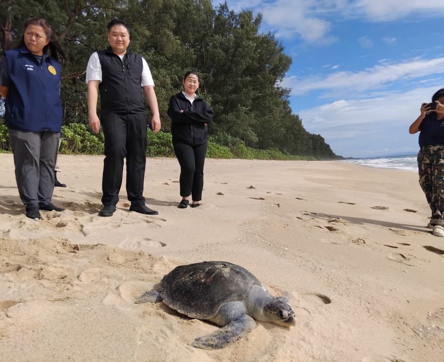 ที่ชายหาดท้ายเหมือง จังหวัดพังงา นายศุภสิทธิ์ เอี่ยมเจริญ นายอำเภอท้ายเหมือง ร่วมกับนายปรารพ แปลงงาน หัวหน้าอุทยานแห่งชาติเขาลำปี–หาดท้ายเหมือง ศูนย์วิจัยและพัฒนาการเพาะเลี้ยงสัตว์น้ำชายฝั่งพังงา กำนันตำบลท้ายเหมือง และคุณกฤษ ศรีฟ้า กรรมการกองทุนอนุรักษ์เต่าทะเลและถิ่นอาศัย พังงา–ภูเก็ต ร่วมกันปล่อย เต่าหญ้าเพศเมีย คืนสู่ท้องทะเลบริเวณหาดท้ายเหมือง เพื่อส่งเสริมการอนุรักษ์ทรัพยากรธรรมชาติทางทะเลให้ยั่งยืน