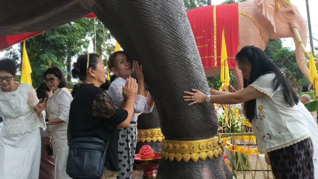 โดยมีชาวบ้านและศิษย์ยานุศิษย์ทั้งในและนอกพื้นที่ต่างมาร่วมงานกันอย่างคึกคักหลังเสร็จพิธีทอดกฐินและถวายช้างคู่หน้าวัด พระสงฆ์และประชาชนได้ร่วมกันทำบุญโปรยทาน พร้อมร่วมพิธี ลอดท้องช้างเพื่อความเป็นสิริมงคล เชื่อว่าจะช่วยให้ชีวิตราบรื่น ปลอดภัย และเจริญรุ่งเรือง บรรยากาศภายในงานเป็นไปอย่างคึกคัก เต็มไปด้วยความศรัทธา เสียงสวดมนต์และเสียงฆ้องกลองและเสียงประทัดดังกึกก้อง สะท้อนถึงความร่วมแรงร่วมใจของชาวบ้านที่ตั้งใจสืบสานประเพณีบุญทอดกฐินและสร้างสิ่งศักดิ์สิทธิ์คู่บ้านคู่เมืองให้คงอยู่สืบไป