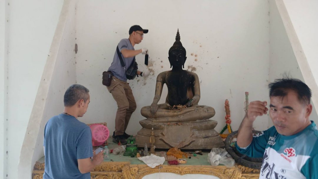 เบื้องต้น พนักงานสอบสวนได้ลงบันทึกคำให้การของผู้แจ้งไว้เป็นหลักฐาน และเตรียมดำเนินการสอบสวนเพิ่มเติมเพื่อหาตัวผู้กระทำผิดมาดำเนินคดีตามกฎหมายในข้อหา “ทำลายหรือทำให้เสียหายแก่ทรัพย์สินทางศาสนา” ซึ่งถือเป็นความผิดร้ายแรงตามประมวลกฎหมายอาญาขณะนี้เจ้าหน้าที่ตำรวจชุดสืบสวนลงพื้นที่เก็บรวบรวมพยานหลักฐานและตรวจสอบกล้องวงจรปิดที่อยู่ใกล้เคียง เพื่อเร่งติดตามตัวผู้ก่อเหตุมาดำเนินคดีโดยเร็ว