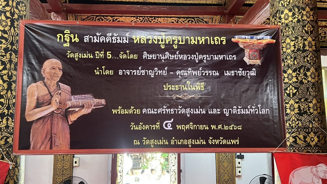 ที่วัดสูงเม่น (Manuscript Temple) ต.สูงเม่น อ.สูงเม่น จ.แพร่ คณะศิษยานุศิษย์ หลวงปู่ครูบามหาเถร ร่วมกับ คณะศรัทธาวัดสูงเม่น และญาติธัมม์ทั่วโลก จัดงานทอดกฐินสามัคคีธัมม์ หลวงปู่ครูบามหาเถร ปีที่ 5 ประจำปี 2568 เพื่อบูรณะพิพิธภัณฑ์คัมภีร์ใบลานวัดสูงเม่น (หอพระธัมม์) พร้อมทั้ง เป็นค่าใช้จ่ายอื่นๆ ในการสนับสนุนกิจกรรมทางพระพุทธศาสนา กำหนดการ เวลา 09.30 น. คณะศรัทธา ร่วมกันแห่องค์กฐินสามัคคีธัมม์ จาก บริเวณ หน้า สัญลักษณ์สถาน พ่อหลวง ร. 9 อำเภอสูงเม่น แห่มายังวัดสูงเม่น และวนรอบวิหารพระเจ้าใจ๋ดี วัดสูงเม่น จำนวน 3 รอบ