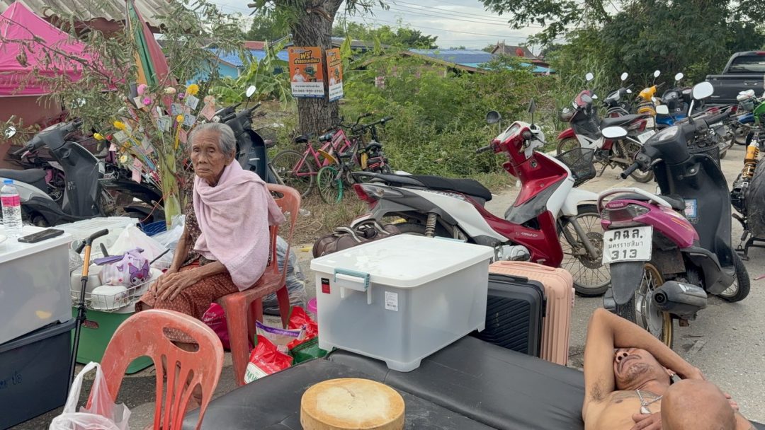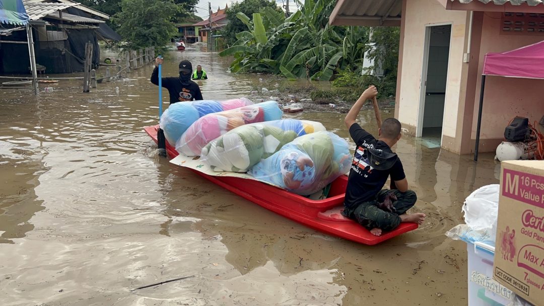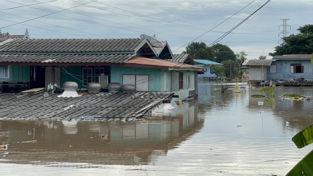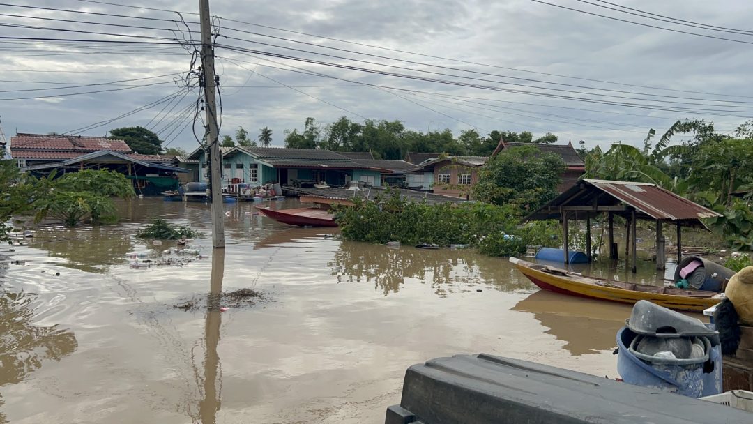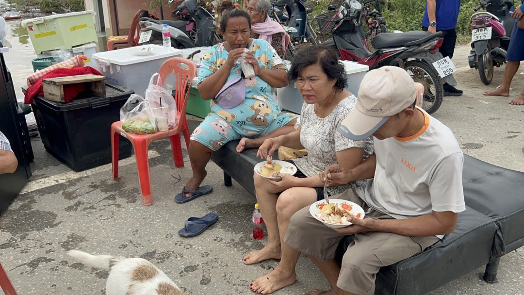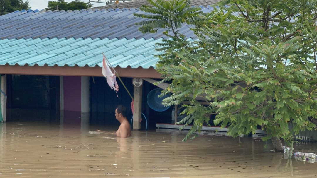 ด้าน นาย ฉัตรชัย สถาพร ผู้ใหญ่บ้าน หมู่ที่ 5 เล่าให้ฟังว่า เมื่อช่วงเช้ามืดระดับน้ำเพิ่มขึ้นอย่างรวดเร็ว ทำให้แนวพนังกั้นน้ำริมน้ำทรุดตัวลง และไหลท่วมชุมชนทั้งหมด ทั้งที่เมื่อวานนี้ในชุมชนแห่งนี้น้ำไม่ท่วม และสามารถอาศัยอยู่ได้ตามปกติ แต่เข้าใจเพราะเป็นธรรมชาติของคนอยู่ริมน้ำ ด้าน นาย ธงชัย ฉัตรชัย อายุ 75 ปี ชาวบ้าน หมู่ที่ 5 เผยเครียดมาก