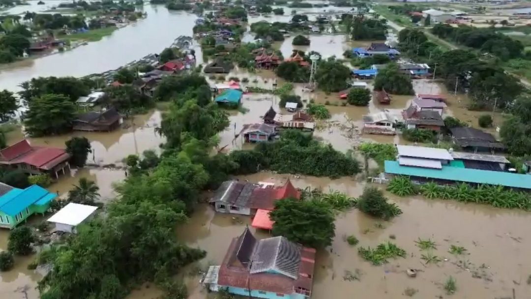 @chaijexu อ่างทอง คันกั้นน้ำคลองโผงเผงพังบริเวณหมู่5น้ำไหลทะลักเข้าท่วมหมู่บ้านกว่า100หลังคาเรือน ชาวบ้านเร่งเก็บข้าวของหนีน้ำกันวุ่น ขณะที่น้ำเจ้าพระยาเพิ่มขึ้นอย่างต่อเนื่อง สถานการณ์น้ำที่เพิ่มขึ้นอย่างต่อเนื่อง ส่งผลทำให้คันกั้นน้ำคลองโผงเผง บริเวณหมู่ที่ 5 ตำบลโผงเผง อำเภอป่าโมก จังหวัดอ่างทอง เกินแรงต้านทำให้พังทะลายลงมา เหตุเกิดเมื่อเช้ามืดที่ผ่านมา ทำให้น้ำจากคลองโผงเผงไหลท่วมชุมชน หมู่ที่ 5 ตำบลโผงเผง อำเภอป่าโมก จังหวัดอ่างทอง หลังระดับน้ำในคลองโผงเผงเพิ่มขึ้น และดันแนวพนังกั้นน้ำบริเวณหมู่ที่ 5 ทรุดตัวลง ทำให้น้ำจำนวนมากไหลเข้าท่วมชุมชนอย่างรวดเร็ว ในระยะเวลา 1 ชั่วโมง ชุมชนหมู่ที่ 5 ถูกน้ำท่วมเต็มพื้นที่ได้รับความเดือดร้อนกว่า 100 หลังคาเรือน ทางเจ้าหน้าที่ต้องช่วยย้ายข้าวของ มาอยู่ที่บริเวณริมถนนและทำการตั้งเต้นท์ช่วยเหลือประชาชน ขณะที่สถานการณ์น้ำเจ้าพระยาเพิ่มขึ้นอย่างต่อเนื่อง ล่าสุดเขื่อนเจ้าพระยา จังหวัดชัยนาท ระบายน้ำในอัตรา 2,700 ลบ.ม./วินาที ไหลผ่านแม่น้ำเจ้าพระยา จังหวัดอ่างทอง ที่บริเวณหน้าศาลากลาง จังหวัดอ่างทอง ระดับน้ำสูง 9.34 เมตร จุดวิกฤตอยู่ที่ 8.50 เมตร จากระดับตลิ่งที่มีเขื่อนกั้นน้ำ 10 เมตร ปริมาณน้ำไหลผ่าน 2,544 ลบ.ม./วินาที และน้ำยังคงเพิ่มขึ้นอย่างต่อเนื่อง กนกศักดิ์ แสงตระการ / อ่างทอง