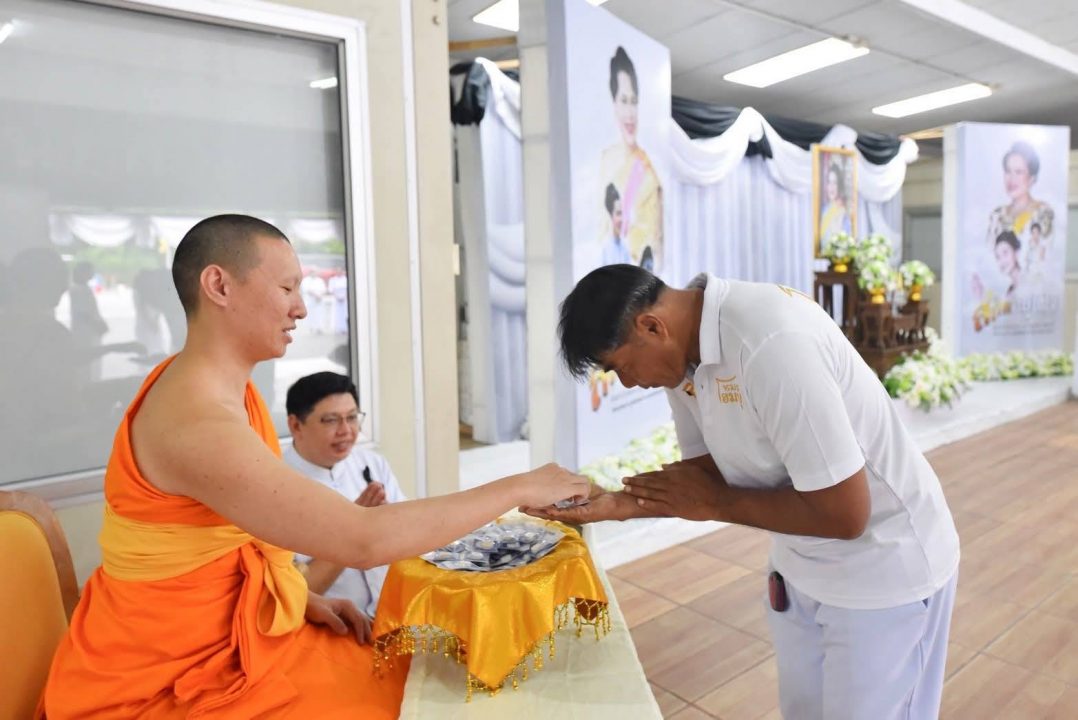 ในโอกาสนี้ คณะผู้ร่วมงานได้พร้อมใจกันถวายภัตตาหารเช้า และจตุปัจจัยไทยธรรมแด่คณะสงฆ์ เพื่อเป็นสังฆทาน โดยได้รับความเมตตาจาก พระครูวิบูลนิติธรรม (ไพบูลย์ ธมฺมวิปุโล) ผู้ช่วยเจ้าอาวาสวัดพระธรรมกาย เป็นประธานสงฆ์ พร้อมคณะสงฆ์ร่วมประกอบพิธี เพื่อความเป็นสิริมงคลและเป็นเนื้อนาบุญอันประเสริฐ