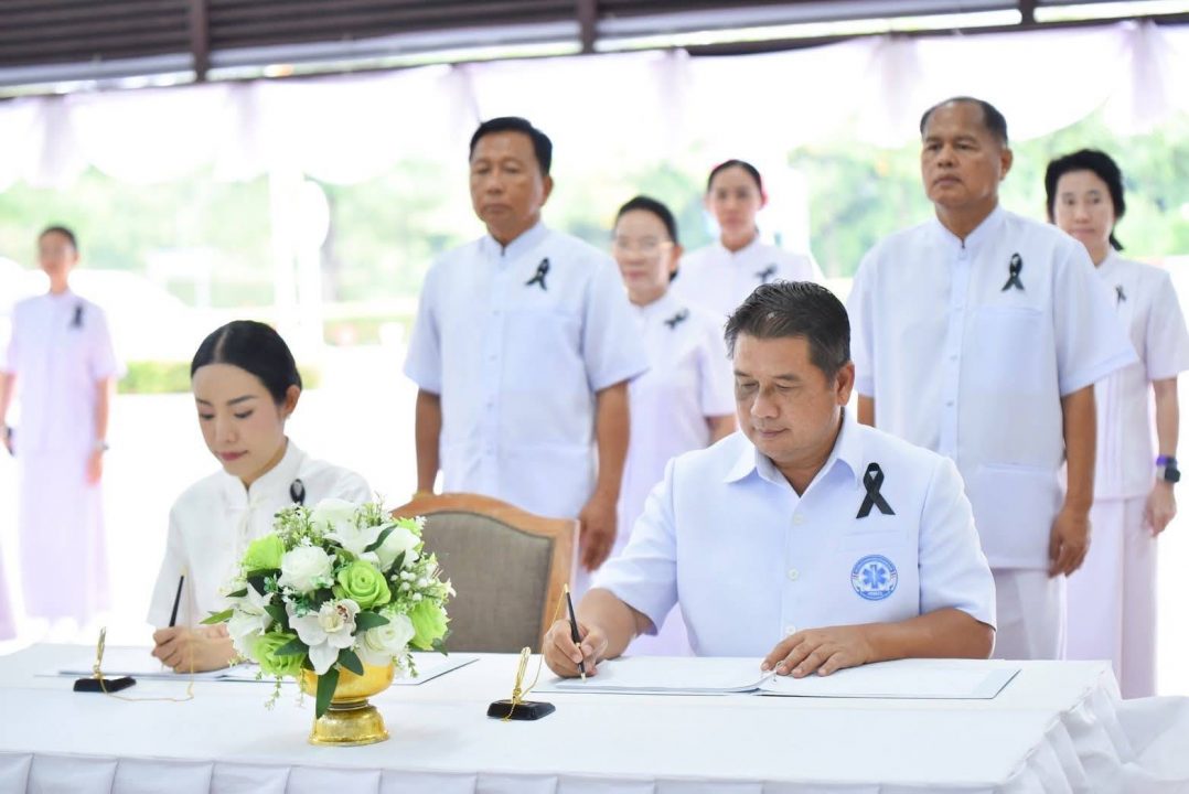 จากนั้น นายอำเภอคลองหลวง พร้อมด้วยนายกองค์การบริหารส่วนตำบลคลองสาม และผู้เข้าร่วมพิธี ได้ร่วมลงนามถวายความอาลัย และน้อมรำลึกในพระมหากรุณาธิคุณของสมเด็จพระพันปีหลวง ซึ่งทรงอุทิศพระวรกาย พระปัญญา และพระราชหฤทัย ในการบำเพ็ญพระราชกรณียกิจนานัปการ เพื่อความผาสุกของประชาชนชาวไทย และความมั่นคงของประเทศชาติ