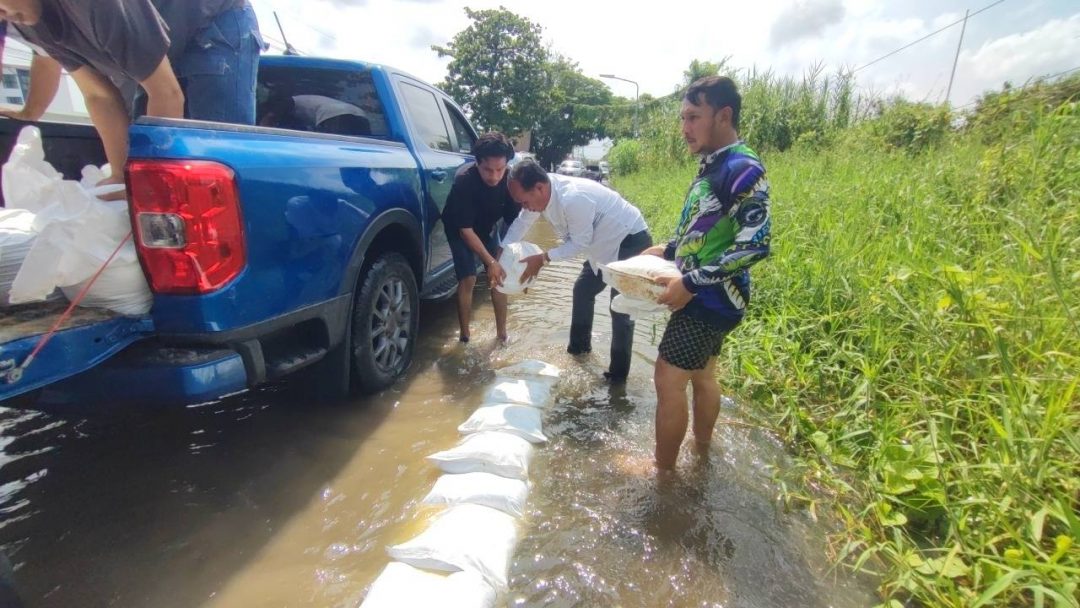 ผู้สื่อข่าวรายงานว่า น้ำในแม่น้ำเจ้าพระยาได้ไหลเอ่อล้นแนวถนนที่ใช้เป็นคันกั้นน้ำ บริเวณ ม.5 ต.บ้านกลาง อ.เมืองปทุมธานี จ.ปทุมธานี จึงเดินทางไปตรวจสอบที่เกิดเหตุเป็นถนนที่ใช้เป็นแนวกั้นน้ำมีปริมาณน้ำจากแม่น้ำเจ้าพระยาไหลเอ่อข้ามถนนเข้าพื้นที่ชั้นในความยาวประมาณ30เมตร ซึ่งขณะนี้เทศบาลตำบลบ้านกลาง และอบตงกระแชง อยู่ระหว่างนำกำลังพลกระสอบทรายและหินคลุกหาทางป้องกัน