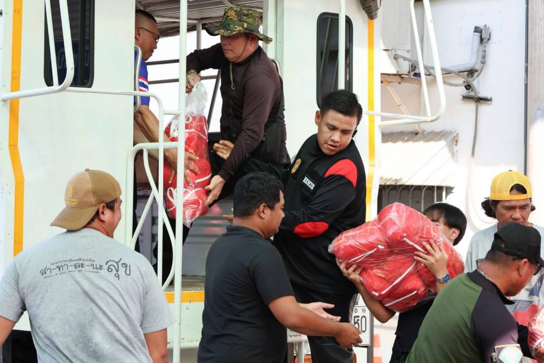 ในการนี้ รศ.วิระศักดิ์ ฮาดดา นายกองค์การบริหารส่วนตำบลคลองสาม พร้อมด้วยนางทุเรียน ปุ่นพิทักษ์ รองนายกองค์การบริหารส่วนตำบลคลองสาม, ดร.ปรียวาจ บัวพุด รองปลัดองค์การบริหารส่วนตำบลคลองสาม และผู้เกี่ยวข้อง ได้ให้เกียรติรับมอบถุงยังชีพจากวัดพระธรรมกาย มูลนิธิธรรมกาย และคณะศิษยานุศิษย์วัดพระธรรมกาย เพื่อนำไปแจกจ่ายต่อยังชาวบ้านในพื้นที่ที่ได้รับความเดือดร้อน