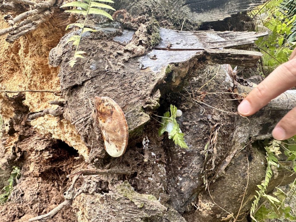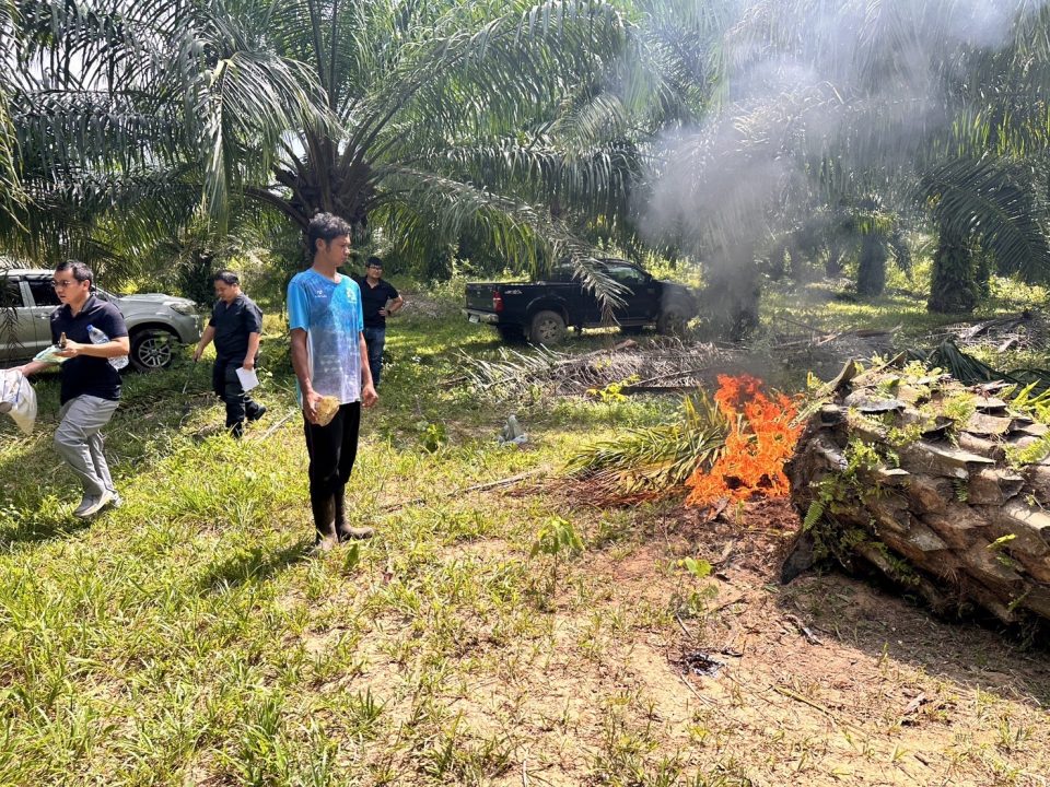 เกษตรจังหวัดกระบี่ ลงพื้นตรวจสอบ พื้นที่แปลงสวนปาล์มน้ำมันแห่งหนึ่งใน อ.คลองท่อมจ.กระบี่ พบโรคลำต้นเน่าในปาล์ม ในพื้นที่แปลงปลูกปาล์มของนายมโนธรรม ใจหาญ เป็นเกษตรกรสวนปาล์มน้ำมัน ซึ่งได้ไปแจ้ง นส.ชวนคนึง วัจฉวียกุล เกษตรอำเภอคลองท่อม ได้ประสานงานไปยัง สนง.เกษตรจังหวัดกระบี่ โดยมี นายวงศกร เอียดเอื้อ นักวิชาการส่งเสริมการเกษตรชำนาญการ กลุ่มอารักขาพืช ได้เดินทางพร้อม จนท มาตรวจสอบในพื้นที่ ม.9 ต.คลองท่อมใต้ อ.คลองท่อม จ.กระบี่ ได้พบเชื้อรา โรคลำต้นเน่าในปาล์ม ซึ่งมีสภาพลำต้นโคนหักโค่นลงมา เป็นจำนวน 2 ต้น และ 1 ต้นพบดอกเห็ดมีสภาพลำต้นมีดอกเห็ดแล้ว ซึ่งเป็นเชื้อ Ganoderma sp. พร้อมได้แนะนำทำลายเห็ด โดยวิธีการเผา และแนะนำวิธีป้องกันและรักษา