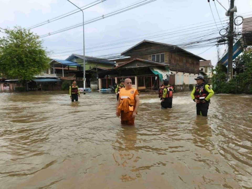 พระครูปลัดสุวัฒนสาธุคุณ (หลวงพี่นาค) เจ้าคณะตำบลบ้านกล้วย เจ้าอาวาสวัดพลายชุมพล ต.บ้านกล้วย อ.เมือง จ.สุโขทัย ได้นำอาหารน้ำดื่มใส่เรือยนต์ผ่ากระแสน้ำที่ไหลเชี่ยวจากคลองแม่รำพัน ไหลเข้าท่วมบ้านเรือนของขาวบ้านในพื้นที่ ต.บ้านกล้วย ในหลายหมู่บ้าน โดยเฉพาะชาวบ้านที่อาศัยอยู่ริมแนวคลองแม่รำพัน น้ำจากแม่รำพัน ได้ท่วมสูง บางจุดท่วมสูงเกือบถึงชั้นสองของบ้านและไหลเชี่ยว ทำให้ชาวบ้านไม่สามารถออกมาด้านนอกได้ ต้องรอการช่วยเหลือจากภายนอกในการนำอาหารและน้ำดื่มไปมอบให้เท่านั้น