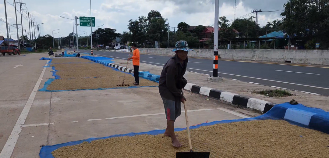 ที่บ้านภูมิซรอล ตำบลเสาธงชัย อำเภอกันทรลักษ์ จังหวัดศรีสะเกษ ซึ่งอยู่ห่างจากแนวชายแดนไทย–กัมพูชา เพียงประมาณ 12 กิโลเมตร บรรยากาศในพื้นที่ยังคงเต็มไปด้วยความวิตกกังวล หลังสถานการณ์ตามแนวชายแดนกลับมาตึงเครียดอีกครั้ง ภายหลังจากช่วงก่อนหน้านี้เริ่มคลี่คลายลง ทำให้ชาวบ้านจำนวนมากต้องเร่งตากข้าวให้เสร็จโดยเร็ว เพื่อเก็บเกี่ยวผลผลิตไว้ขายสร้างรายได้ก่อนที่สถานการณ์จะรุนแรงขึ้น โดยชาวบ้านหลายครอบครัวต่างต้องเลือกระหว่าง “อยู่เร่งตากข้าว” กับ “เตรียมอพยพหนีภัย” เพราะหากเกิดเหตุปะทะขึ้นอีกครั้ง พวกเขาอาจไม่มีโอกาสกลับมาเก็บข้าวที่ตากไว้ได้ ขณะเดียวกัน ยังหวั่นว่าฝนอาจตกลงมาในช่วงนี้ ซึ่งจะทำให้ข้าวชื้นและขายไม่ได้ราคา