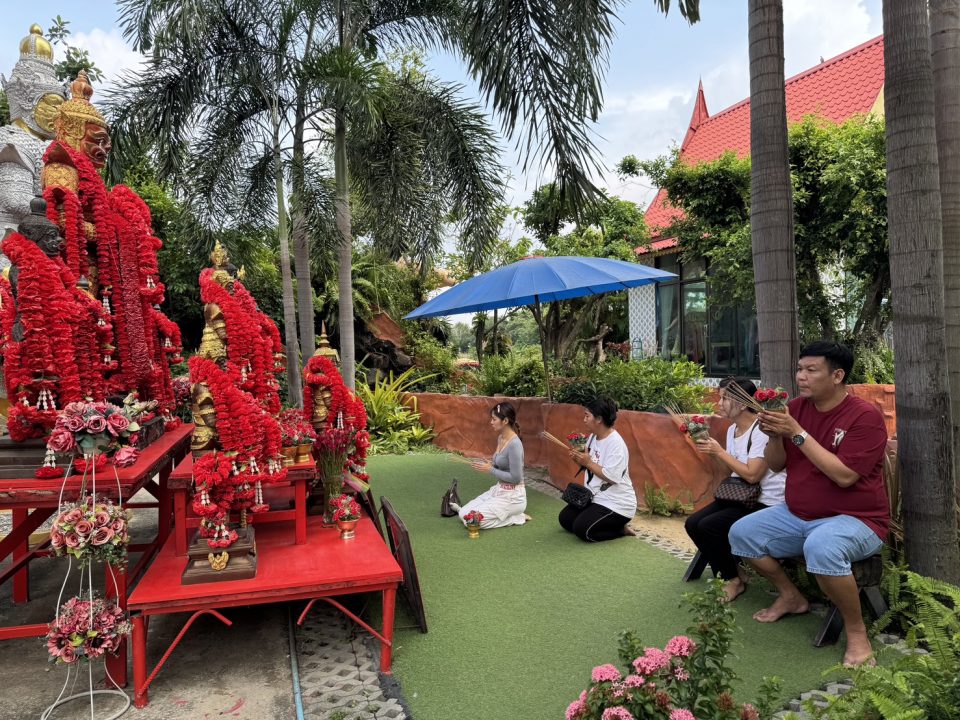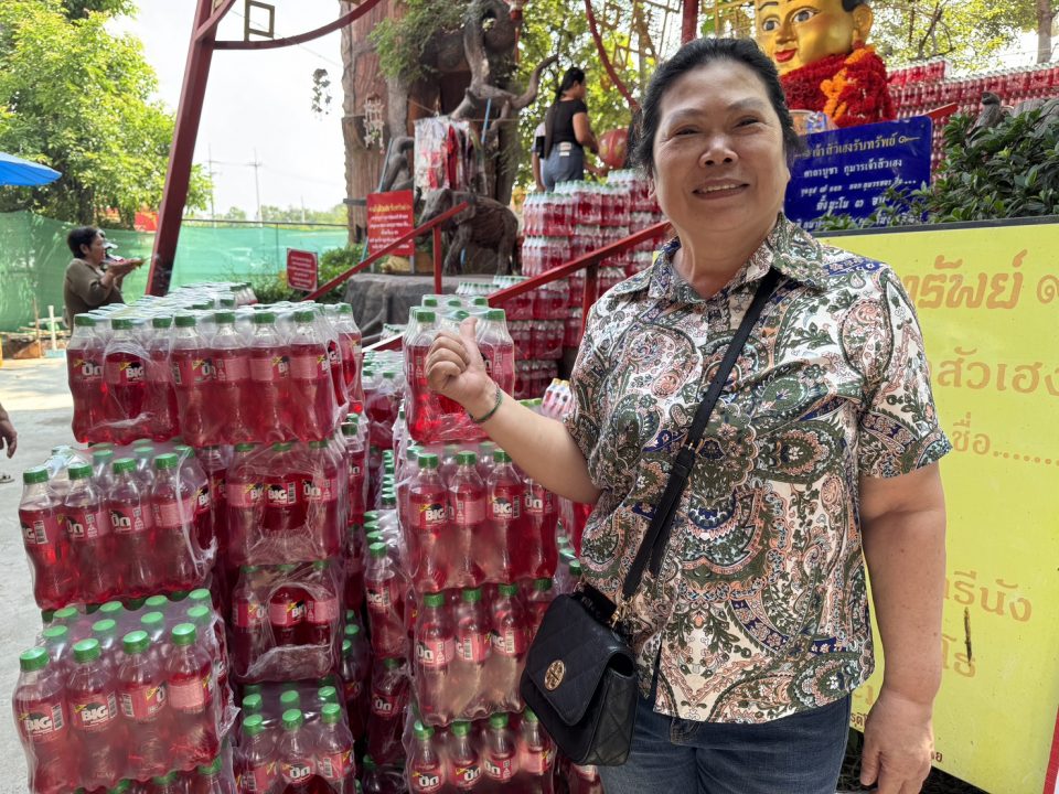 โดยวันนี้มีผู้นำสิ่งของมาแก้บนจำนวนมาก ทั้งแก้บนปู่ฤาษีพรหมเมศ กุมารทองเจ้าสัวเฮงและท้ายเวสสุวรรณจากกการสอบถาม คุณ นิภา อายุ 61 ปีเจ้าของบริษัทรถเครนให้เช่า ที่เดดินทางมาจากพระราม 2 โดยนำน้ำแดงจำนวน 100 แพ็คมาแก้บนกุมาทองเจ้าสัวเฮงเป็นครั้งที่ 2 หลังสิ่งที่ขอประสบความสำเร็จ โดย คุณ นิภา ได้กล่าวว่า วันนี้มาถวายน้ำแดง 100 แพ็ค ครั้งนี้เป็นครั้งที่ 2 โดยขอเครื่องธุรกิจมีรถเครนเช่า ขายรถเครนเก่า พอประสบความสำเร็จเราก็มาถวาย รอบที่แล้วขายรถได้ 2 คันในหนึ่งเดือน ก็นำน้ำแดงมาถวาย 100 แพ็ค รอบนี้ก็ขายได้อีก 2 คันก็นำมาถวายอีก 100 แพ็ค ถ้ารอบหน้าขายได้อีก 2 คันก็จะนำมาถวายอีกก่อนกลับคุณ นิภา ยังได้ไปส่องเลขอ่างน้ำมนต์บนศาลาบุญช่วยเพื่อนำไปเสี่ยงโชค โดยเลขอ่างน้ำมนต์ได้แก่ 0 2 3 7 8 9