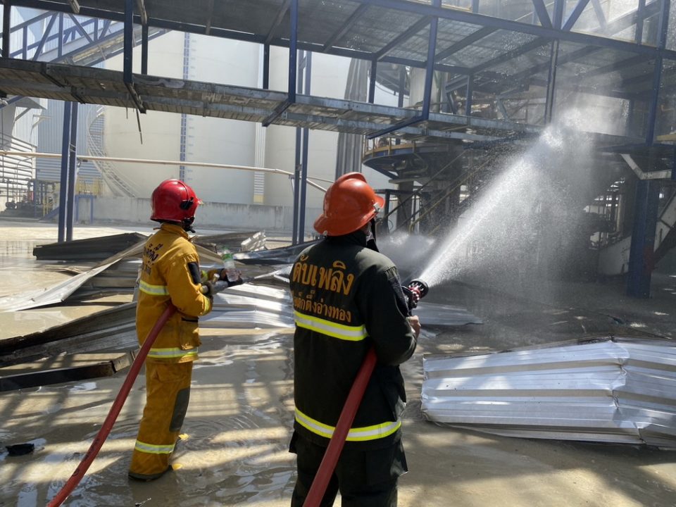 ซึ่งทาง นาย จิรายุท อาญาเมือง ปลัดอำเภอไชโย ที่เข้าตรวจที่เกิดเหตุ กล่าวว่า เบื้องต้นมีผู้ได้รับบาดเจ็บจำนวน 4 คน ทางบริษัทได้เร่งนำตัวผู้ที่ได้รับบาดเจ็บทั้ง 4 ราย ส่งรักษาที่โรงพยาบาลไชโย และทางเจ้าหน้าที่โรงงาน ได้เรียกพนักงานทุกคนให้รวมตัวกันที่ข้างโกดัง เพื่อตรวจสอบว่าครบจำนวนหรือไม่ ส่วนจุดที่เพลิงไหม้นั้น เป็นจุดที่ทำการผลิตน้ำมันรำข้าว เจ้าหน้าที่ยังคงใช้น้ำฉีดเพื่อลดอุณหภูมิ และได้ประสานขอโฟมดับเพลิงจากหน่วยงานทั้งในพื้นที่อ่างทอง และพระนครศรีอยุธยา เพื่อใช้ดับสารออกซี่เฮกซอนที่ใช้ในการสกัดน้ำมันรำข้าว ที่มีสารเคมีอ๊อกซิเดน และน้ำมันรำข้าวจำนวนมาก จำเป็นต้องใช้ โฟมและสารเคมีในการดับไฟ