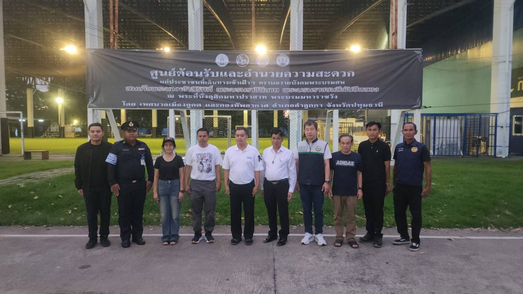 ที่ สนามกีฬากองทัพอากาศ ธูปะเตมีย์ ถ.พหลโยธิน ตำบลคูคต อำเภอลำลูกกา จังหวัดปทุมธานี นายเอกวิทย์ มีเพียร ผู้ว่าราชการจังหวัดปทุมธานี ลงพื้นที่ตรวจเยี่ยมจุดพักรถการให้การบริการประชาชนที่เดินทางมาจากต่างจังหวัด เพื่ออำนวยความสะดวกแก่ประชาชนจากจังหวัดภาคเหนือ และ ภาคตะวันออกเฉียงเหนือในการเดินทางมาเข้าเฝ้าฯ กราบถวายบังคมพระบรมศพ สมเด็จพระนางเจ้าสิริกิติ์ พระบรมราชินีนาถ พระบรมราชชนนีพันปีหลวง ตั้งแต่วันที่ 17 พฤศจิกายน 2568 ถึงวันที่ 1 กุมภาพันธ์ 2569 โดยมี นายวีรพจน์ ปานนุ่ม นายกเทศมนตรีเมืองคูคต พร้อมด้วยคณะผู้บริหาร และเจ้าหน้าที่ ทม.คูคตให้การต้อนรับ