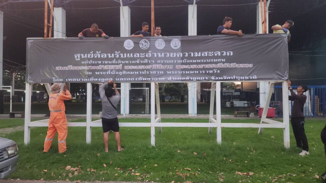 โดย นายเอกวิทย์ มีเพียร ผู้ว่าราชการจังหวัดปทุมธานี เปิดเผยว่า ในส่วนของจังหวัดปทุมธานี ที่สนามกีฬากองทัพอากาศ ธูปะเตมีย์ แห่งนี้เราเตรียมความพร้อมที่จะรองรับพี่น้องประชาชน ที่เดินทางมาจากต่างจังหวัด เพื่อที่จะมากราบถวายบังคมพระบรมศพสมเด็จพระนางเจ้าสิริกิติ์ พระบรมราชินีนาถ พระบรมราชชนนีพันปีหลวง ซึ่งในวันพรุ่งนี้ (17 พ.ย. 68) เป็นวันแรก ซึ่งจังหวัดปทุมธานีจะเป็นจุดรับรองประชาชนจากจังหวัดภาคเหนือ และภาคตะวันออกเฉียงเหนือ โดยจังหวัดแรกที่จะเดินทางเข้ามาคือ จังหวัดกำแพงเพชร ซึ่งมีประชาชนเดินทางมากว่า 1,000 คน รถบัสกว่า 25 คัน เราจึงต้องเตรียมความพร้อมเพื่ออำนวยความสะดวกให้กับประชาชน ไม่ว่าจะเป็นเรื่องของ อาหาร ที่พักคอย ห้องสุขา อีกทั้งยังประสานองค์กรปกครองส่วนท้องถิ่นที่มีความพร้อมสลับสับเปลี่ยนกันเข้ามาทำหน้าที่ดูแลประชาชนอีกด้วย