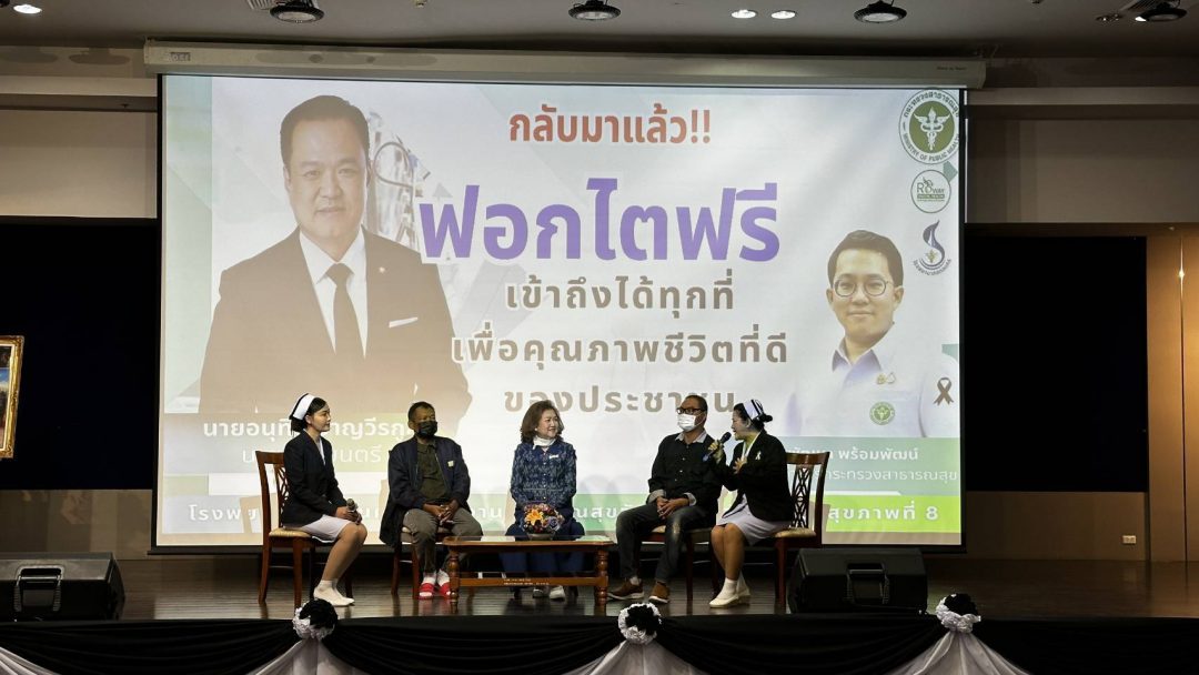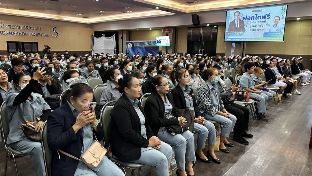 ที่โรงพยาบาลศูนย์สกลนคร ได้จัดงานสัปดาห์โรคไต ฟอกไตฟรี ปลูกถ่ายไตฟรี เข้าถึงทุกที่เพื่อคุณภาพชีวิตที่ดีของพี่น้องชาวสกลนคร โดยมี นพ.พรพัฒน์ ภูนากลม นายแพทย์สาธารณสุขจังหวัดสกลนคร ร่วมกับ นพ.สมศักดิ์ ประฏิภาณวัตร ผู้อำนายการโรงพยาบาลสกลนคร ภายในงานมีการให้ความรู้เรื่องโครงการฟอกไตฟรี ในการล้างไตทางช่องท้องและการฟอกเลือดด้วยเครื่องไตเทียม โดยแพทย์หญิงวรรณพร อึ้งสกุล อายุรแพทย์โรคไต โรงพยาบาลสกลนคร นอกจากนี้ยังมีการเสวนาแลกเปลี่ยนประสบการณ์การล้างไตทางช่องท้อง การฟอกเลือดด้วยเครื่องไตเทียม โดยผู้ป่วยที่ทำการการล้างไตในแต่ละรูปแบบ สร้างความรู้ความเข้าใจการการประคับประคองการทำงานของไต และตระหนักถึงการใช้ชีวิตประจำวันในการควบคุมอาหาร หวาน มัน เค็ม ซึ่งเป็นปัจจัยเสี่ยงทำให้ป่วยโรคไต