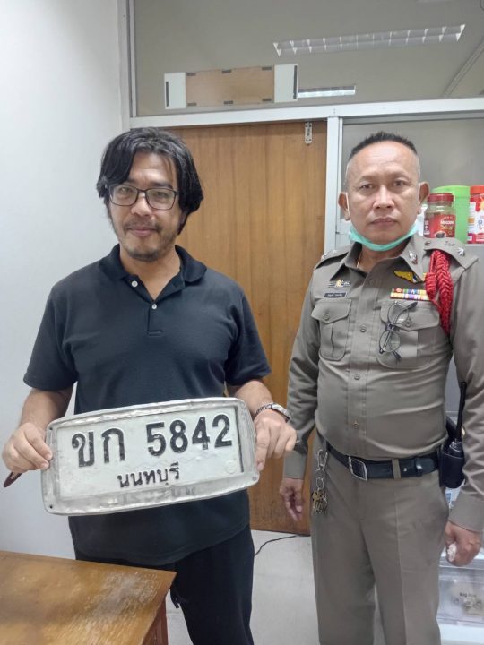 จากการสอบถาม พ.ต.อ.สมชาย แจ้งธรรมมา ผกก.สภ.บางศรีเมือง กล่าวว่า หลังจากที่มีน้ำทะเลหนุนขึ้นสูง และฝนตกหนักอย่างต่อเนื่อง ทำให้มีน้ำท่วมสูงแถวสะพานพระราม 5 และอีกหลายจุดในจังหวัดนนทบุรี ทำให้ผู้ใช้รถใช้ถนนในเส้นทางดังกล่าวต้องขับรถลุยน้ำ เกิดปัญหาป้ายทะเบียนหลุดจมน้ำหลายแผ่น และยังมีพื้นที่บริเวณคลองอ้อมที่มีน้ำท่วมสูงเพราะเป็นทางกลับรถ ตอนนี้ทางเจ้าหน้าที่ตำรวจได้เก็บแผ่นป้ายทะเบียนที่หลุดมามากกว่า 80 แผ่น ในเวลาไม่ถึงอาทิตย์ ตนจึงอยากฝากประชาสัมพันธ์ให้ประชาชนที่ทำป้ายทะเบียนรถยนต์หล่นหายไว้ สามารถมาติดต่อได้ที่ สภ.บางศรีเมือง หรือเข้ามาดูได้ ส่วนประชาชนท่านใดที่เจอป้ายทะเบียนหลุดร่วงอยู่ตามท้องถนน สามารถเก็บและนำมาให้ทางเจ้าหน้าที่ตำรวจสภ.บางศรีเมืองได้ เราจะเก็บไว้ให้อย่างดี จนกว่าจะมีเจ้าของมาติเต่อขอรับคืน