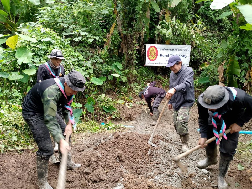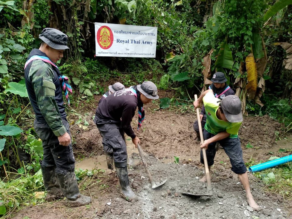 กองร้อยทหารพรานที่ 3208 หน่วยเฉพาะกิจกรมทหารพรานที่ 32 กองกำลังผาเมือง จัดกำลังพล ร่วมกับ วิทยากรและเครือข่าย “ฮีโร่ฟื้นป่าน่าน”, ชมรมคนรักษ์ดิน น้ำ ป่าน่าน จำนวน 12 คน ดำเนินการสร้างฝ่ายแกนดินซีเมนต์ขนาดเล็ก (แบบกึ่งถาวร) จำนวน 1 ฝาย (โดยงบประมาณ ชมรมคนปลายน้ำ รักษ์ป่าต้นน้ำ, คณะสงฆ์จังหวัดน่าน) ความกว้างฝาย 2 เมตร สูง 0.80 เมตร