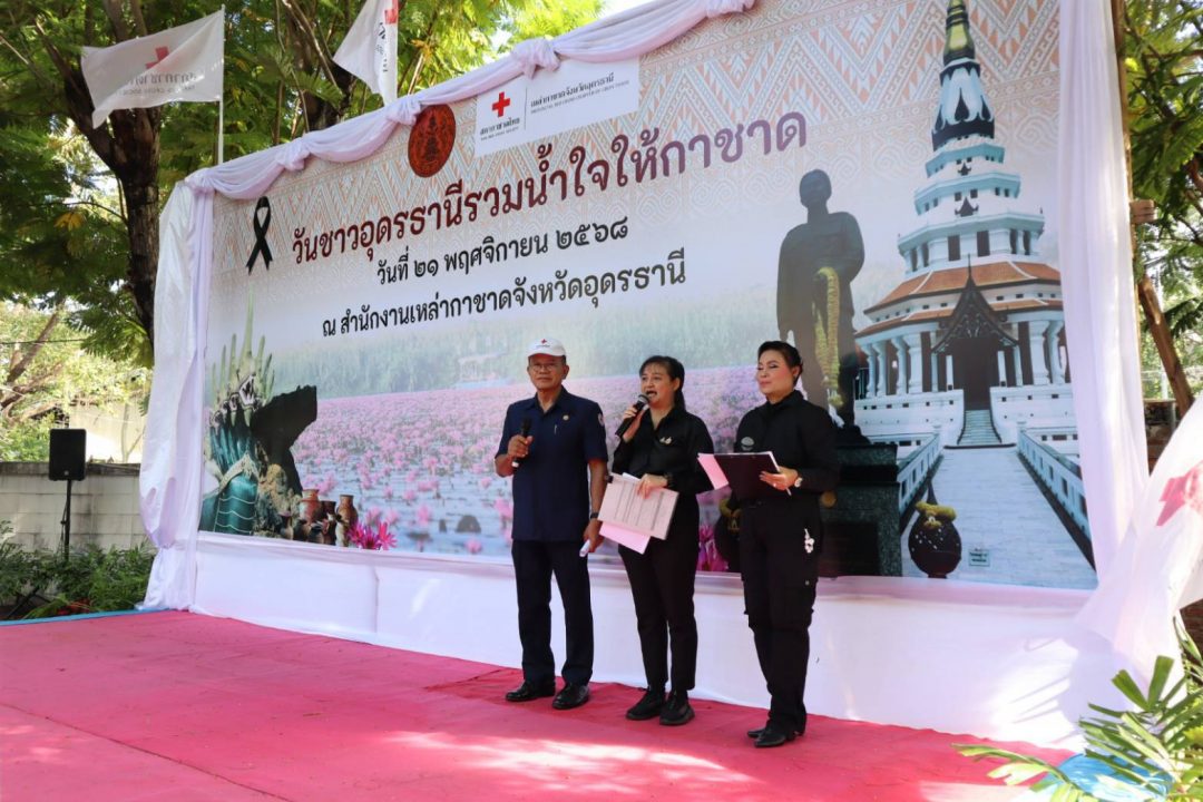 ที่สำนักงานเหล่ากาชาดจังหวัดอุดรธานี มีการจัดกิจกรรม “วันรวมน้ำใจให้กาชาด ประจำปี 2568” เพื่อรับมอบสิ่งของ เครื่องอุปโภคบริโภค และรางวัลต่าง ๆ สำหรับใช้ในร้านมัจฉากาชาด ซึ่งเป็นหนึ่งในกิจกรรมสำคัญเพื่อหารายได้สมทบงานกาชาดประจำปีทุ่งศรีเมือง 2568 ภายในงานบรรยากาศคึกคักและเป็นไปด้วยความพร้อมเพรียง โดยมี นายราชันย์ ซุ้นหั้ว ผู้ว่าราชการจังหวัดอุดรธานี และนายกเหล่ากาชาดจังหวัดอุดรธานี เป็นประธานในพิธีและร่วมรับมอบสิ่งของด้วยตนเอง