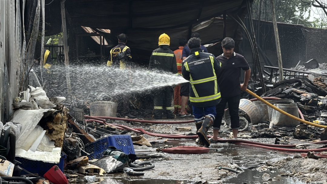 นายจิโรจ ภู่โพล้ง อายุ 58 ปี พี่ชายเจ้าของร้านรับซื้อของเก่า-เครื่องใช้ไฟฟ้ามือ 2 กล่าวว่า ที่ร้านจะรับซื้อพวกเครื่องใช้ไฟฟ้าและนำมาแยกอะไหล่ เช่น เครื่องซักผ้า แอร์ ทีวี ตู้เย็น ส่วนที่เกิดเพลิงไหม้จะเป็นพวกอะไหล่อุปกรณ์ที่เสีย และใช้ได้บางส่วน ตอนนี้ตนยังไม่สามารถประเมินมูลค่าความเสียหายได้ ซึ่งที่ร้านมีคนงานแค่ 4 คน แต่ก็มีญาติพี่น้องอีกหลายคนมาอยู่ด้วยกัน (ไม่ได้ทำงานด้วย) ตอนเกิดเหตุตนไปทิ้งขยะแถวบางแม่นาง กลับมาถึงก็เกิดเหตุแล้ว ตนไม่รู้ว่าคนงานทำอะไรแต่ตนสั่งไว้ว่าให้เข็นตู้เย็นเข้าไปด้านในเพื่อแยกชิ้นส่วนออก เท่าที่ทราบคนงานใช้แค่เครื่องมือกับคีมตัดเหล็ก แต่ไม่รู้ว่าตอนที่ตนไม่อยู่เขาใช้อะไร