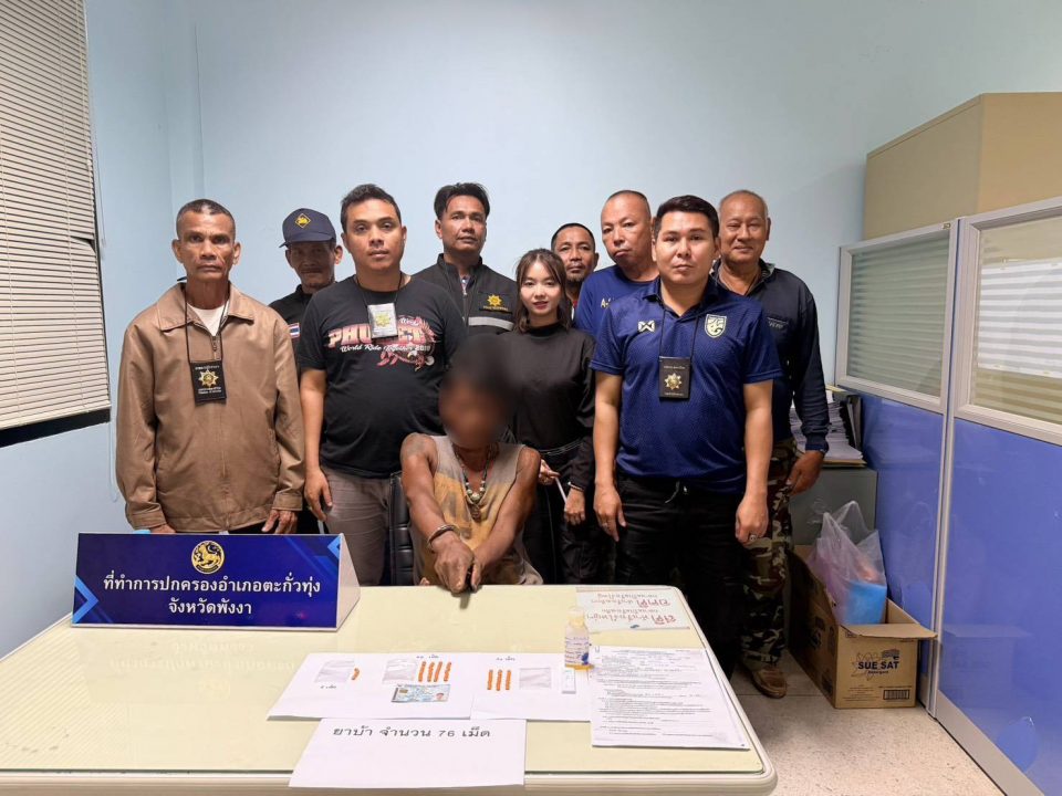 ภายใต้การอำนวยการของนายนายวิเชฐ สูยะนันท์ นายอำเภอตะกั่วทุ่ง นางสาวนุสรา ธรรมประดิษฐ์ ปลัดอำเภอหัวหน้ากลุ่มงานบริหารงานปกครอง นายสุระไชย ทองศรีรักษ์ ปลัดอำเภอหัวหน้าฝ่ายความมั่นคง ได้มอบหมายให้นายธีระวัตร แก้วพิทักษ์ ปลัดป้องกันอำเภอตะกั่วทุ่ง นางสาวเสาวพร เมตตามตะกุล ปลัดอำเภอประจำตำบลกระโสม นำสมาชิกอส. สังกัดร้อยอส.อ.ตะกั่วทุ่ง 3 ร่วมกับชุดรักษาความปลอดภัยหมู่บ้าน(ชรบ.) บ้านเขาเปาะ ตำบลกระโสม นำโดย นายสุวัฒน์ เหมซะ ผู้ใหญ่บ้าน หมู่ที่ 5 และผู้ช่วยผู้ใหญ่บ้าน ร่วมกันออกลาดตระเวนเพื่อรักษาความสงบเรียบร้อยและป้องกันการเกิดอาชญากรรมในเขตพื้นที่หมู่ที่ 5 บ้านเขาเปาะ อำเภอตะกั่วทุ่ง จังหวัดพังงา ขณะปฏิบัติการได้พบเห็น นายนรุต (สงวนนามสกุล) อายุ 50 ปี กำลังขับขี่รถจักรยานยนต์อยู่ในหมู่บ้าน เมื่อเห็นเจ้าหน้าที่เรียกให้จอด ก็มีอาการพิรุธ พร้อมโยนอะไรบางอย่างลงข้างรถ เจ้าหน้าที่จึงทำการตรวจค้นพบยาบ้าอยู่ในถุงพลาสติก3ถุง จำนวน 76เม็ดอยู่ข้างรถ