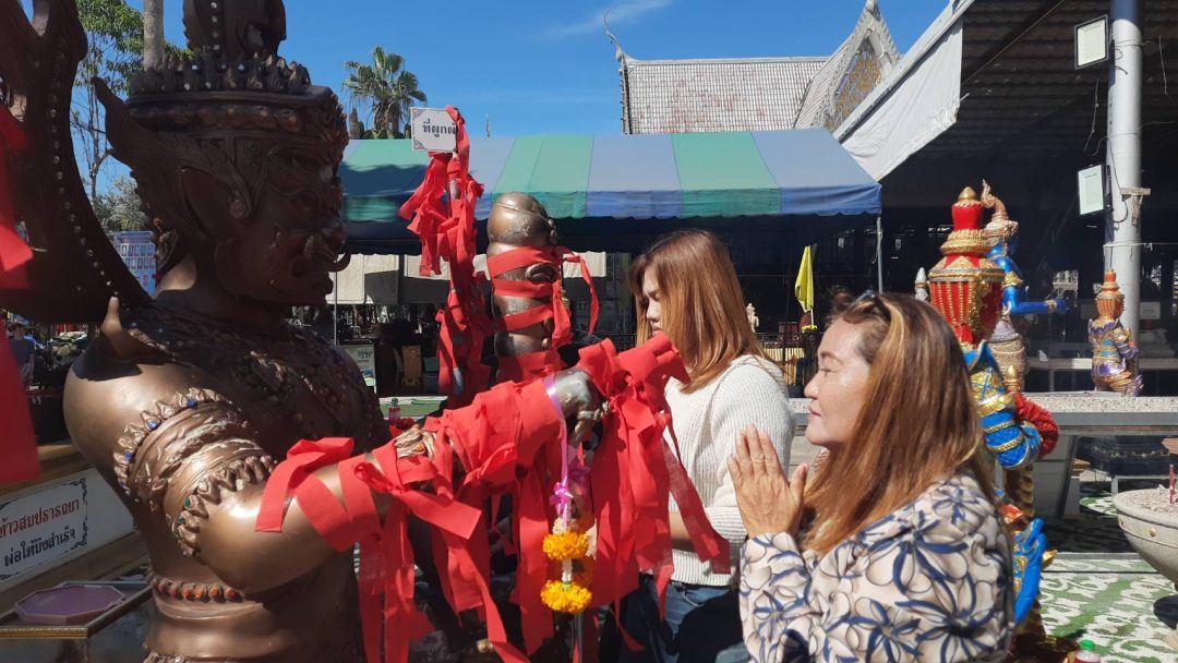 @chaijexu ปทุมธานี จ้างนางรำแก้บนท้าวเวสฯ ขอยอดขาย 50,000 ได้ใน 1อาทิตย์ มาเข้าฝันสาวให้โชคทั้งปี ให้หนุ่มสมัครงานได้เลื่อนตำแหน่งสมใจ วัดดอนใหญ่ ต.คลองแปด อ.ลำลูกกา จ.ปทุมธานี ยังเต็มไปด้วยประชาชนจำนวนมากที่เดินทางมากราบไหว้ขอพรสิ่งศักดิ์สิทธิ์ภายในวัดดอนใหญ่ และที่ขาดไม่ได้สำหรับสายมูส่วนใหญ่ต้องมากราบไหว้ขอพรและแก้บนกับท้าวเวสสุวรรณ ซึ่งสายมูเชื่อว่าท้าวเวสสุวรรณเป็นเทพแห่งโชคลาภ วาสนาที่มาถึงวัดดอนใหญ่แล้วต้องมากราบไหว้ขอพรกัน นอกจากนี้ยังมีไอ้ไข่วัดดอนใหญ่และแม่นางกวักที่สายมูต่างมาขอพรและแก้บนกันอย่างต่อเนื่องอีกด้วย ด้านนางสาวจิรนันท์ ธรรมจริยากร ย่านคลองสี่ อ.ธัญบุรี จ.ปทุมธานี จ้างนางรำมาแก้บนท้าวเวสสุวรรณหลังได้ขอยอด 50,000 กว่าบาทในอาทิตย์ที่ผ่านมา นางสาวจิรนันท์กล่าวว่าตนเองนั้นเป็นแม่ค้าออนไลน์ขายสินค้าทั่วไปตามแอปออนไลน์ตนเคยมาขอพรกับท้าวเวสสุวรรณมาแล้ว ในครั้งแรกตนก็มาขอยอดการขายให้ทะลุเป้าก็ประสบความสำเร็จ แต่ในเดือนที่ผ่านมายอดขายของตนนั้นไม่กระเตื้องเลย จนรู้สึกกังวลใจเป็นอย่างจึงได้เดินทางมาขอพรกับท้าวเวสสุวรรณว่าขอให้ยอดทะลุเป้าในเดือนนี้ 50,000 บาท ผลปรากฏว่าพอตนกลับไปภายในแค่อาทิตย์เดียวตนกลับได้ยอดสั่งซื้อเกินกว่า 50,000 บาท รู้สึกดีใจเป็นอย่างมาก ที่สำเร็จภายในอาทิตย์เดียว วันนี้ตนจึงจ้างนางรำมารำแก้บน 2 จบให้กับท้าวเวสสุวรรณดังกล่าว และก่อนกลับได้จุดธูปเสี่ยงทายได้เลข 366 นำกลับไปลุ้นโชคต่อหนึ่ง ทางด้านนางสาวกรญาณิน เอี่ยมมี เดินทางมาจากย่านร่มเกล้า นำประทัด 1,000 นัดพร้อมด้วยเครื่องเซ่นไหว้มาแก้บนท้าวเวสสุวรรณหลังได้โชคก้อนโตในงวดที่ผ่านมานางสาวกรญาณินกล่าวว่าตนเองมาขอพรจากท้าวเสสุวรรณเป็นประจำตั้งแต่ตนเองมาขอพรกับท้าวเวสสุวรรณตั้งแต่ครั้งแรกจนถึงวันนี้ก็ปีกว่าแล้วถือว่าโชคดีได้โชคมาตลอดทั้งปีจะได้มากน้อยบ้างต่างกันไปแลัก็มียางครั้งเหมือนกับท้าวเวสสุวรรณมาเข้าฝันว่าให้ซื้อเลขตัวนี้ก็เคยมีอยู่บ่อยครั้งแม้ตอนท่านเข้าฝันจะเห็นไม่ชัดว่าเป็นท่านท้าวเวสฯแต่ตนเองนั้นรู้สึกได้ว่าเป็นท่าน ซึ่งท้าวเวสเหมือนจะบอกว่าเลขที่ได้ตอนแก้บนนั้นไม่ใช่จึงมาเข้าฝันบอกให้ใหม่อะไรอย่างนั้น วันนี้จึงมีโอกาศมาแก้บนท้าวเวสสุวรรณอีกครั้งและก่อนกลับได้จุดประทัดได้เลข 520 22 นำกลับไปอีกครั้ง ส่วนทางด้านนายศุภกานต์ นวลปรีดา นำเครื่องเซ่นไหว้มาแก้บนท้าวเวสสุวรรณหลังได้ทำงานตามที่ขอพรไว้ นายศุภกานต์กล่าวตนเองได้ไปสมัครงานในมหาลัยแห่งหนึ่งในตำแห